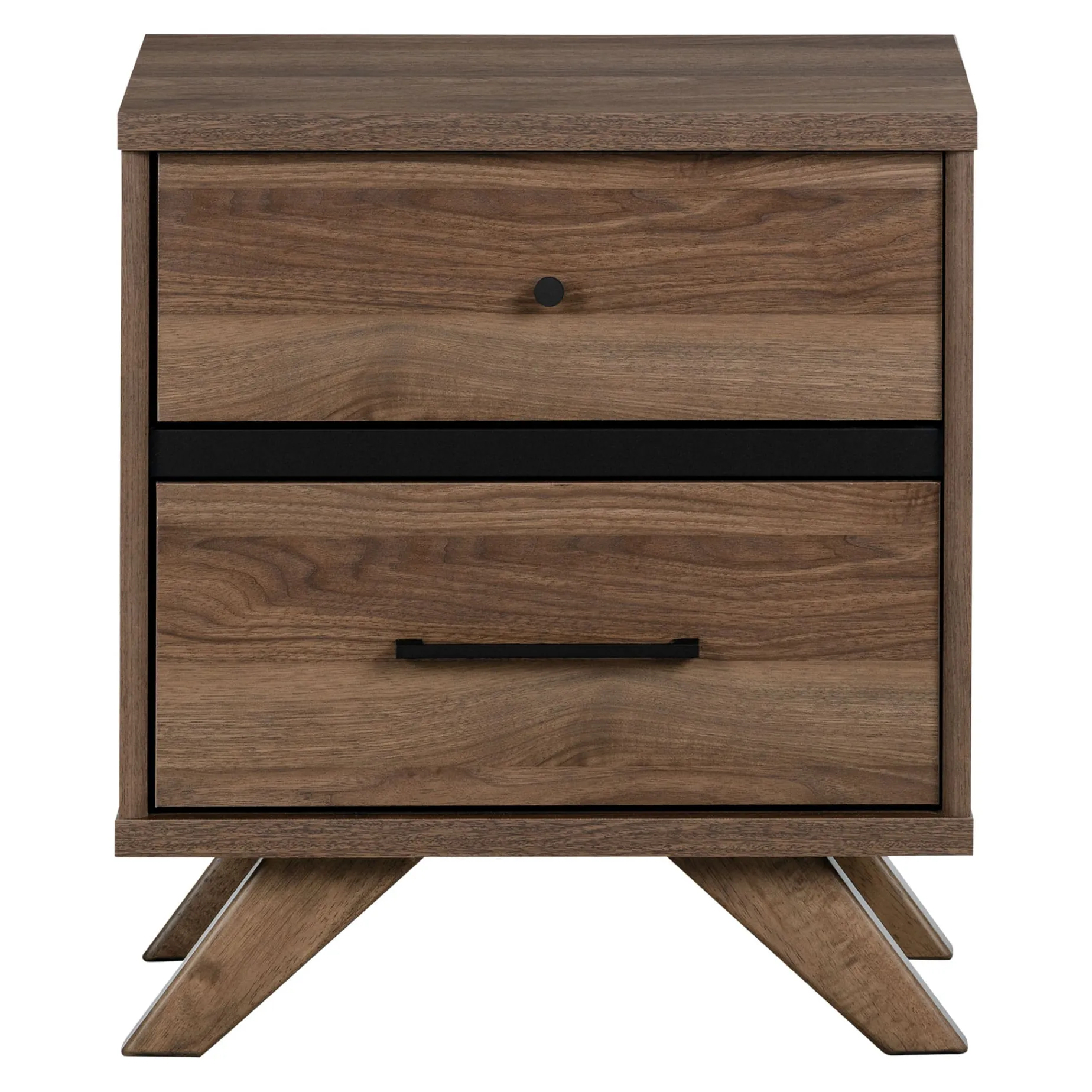 A night stand with character Here’s a piece they’re sure to notice! With angled wooden legs for an original touch and a decorative molding for contrast, this Modern style night stand will look quite elegant next to your bed. A versatile Scandinavian style Whatever decor you choose for your bedroom, this night stand from the Flam collection will add a touch of Scandinavian chic. Create a warm, laid back atmosphere – a place to sleep or just relax. This piece will blend easily with pastel colors and a minimalist interior. Keep it simple – that’s the key! Storage space This small night stand has two drawers on metal slides for storing whatever you keep by your bed: magazines, reading glasses, a box of tissues, your phone and mobile devices. The drawers, which feature elegant metal knobs and straight handles, open and close smoothly, to allow you easy access to your things. Each drawer can hold up to 25 pounds. Keep the space around your bed neat and tidy!