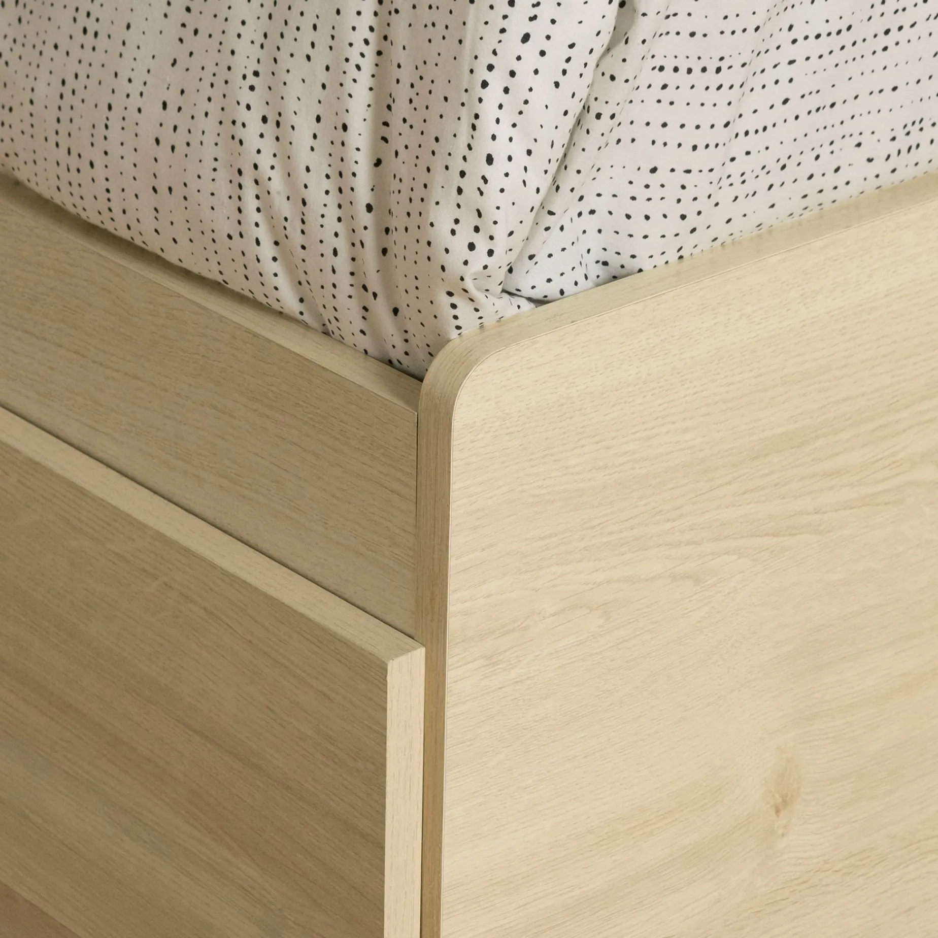 With its sleek and modern lines, this bed sports a contemporary look that easily fits into any décor. Its rounded corners ensure safety while adding a touch of softness to the room. This bed stands out for its great flexibility, fitting into a room with a more subdued style as well as the most colorful one!