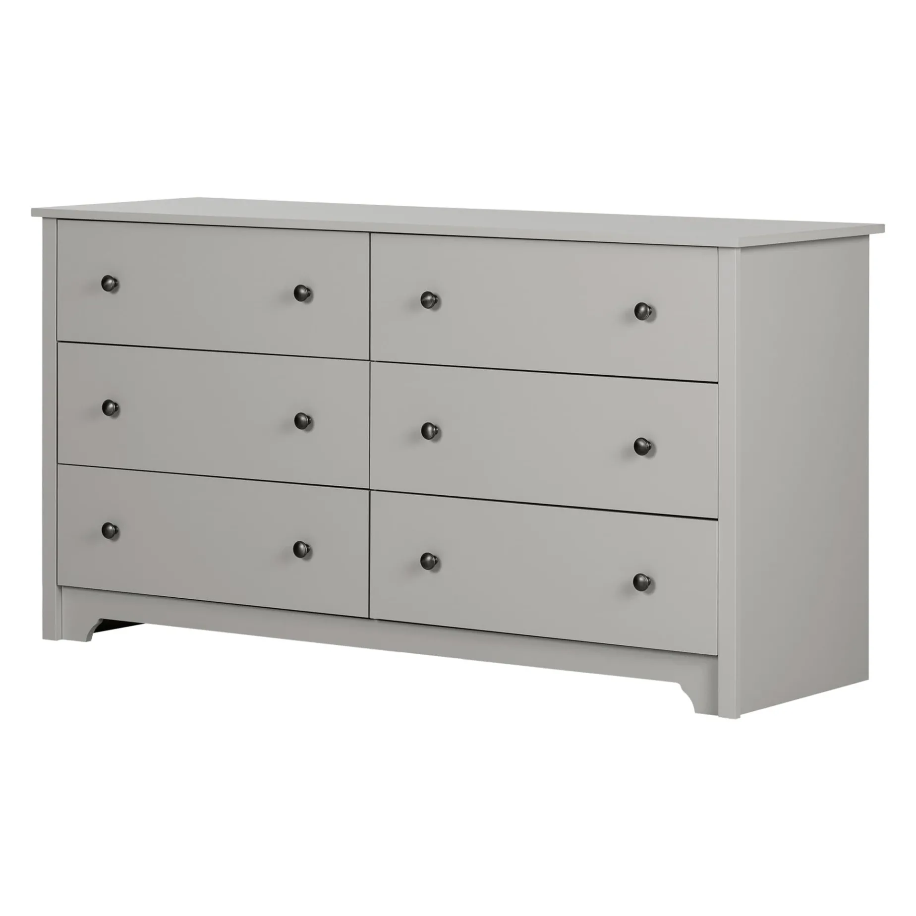 CONTEMPORARY STYLE: With a modern design, this double dresser features a decorative kickboard and wooden knob handles.