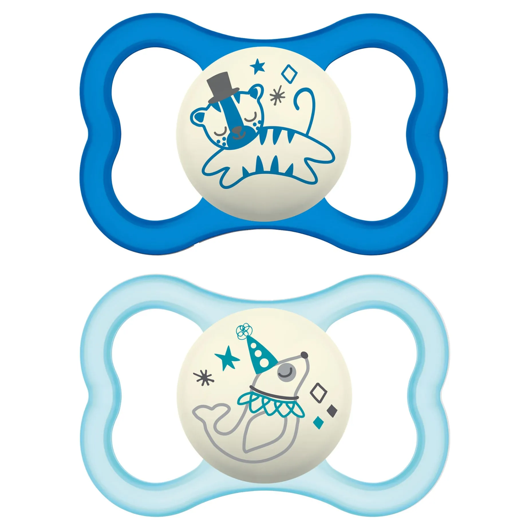 -The large air holes in these MAM pacifiers leave enough space for babies with sensitive skin to breathe