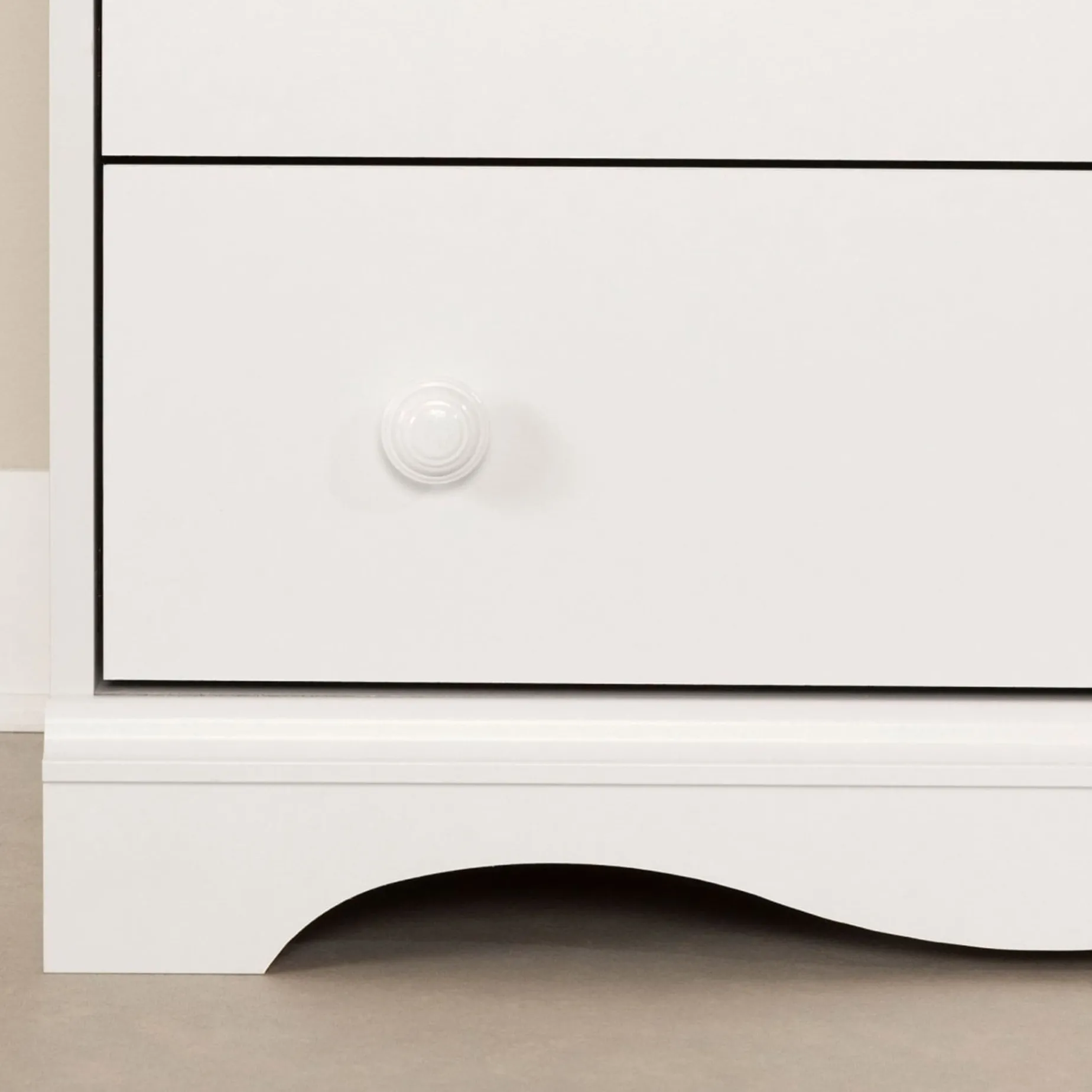 – SLEEK AND TRENDY: With contemporary shaping and finish, the dresser features a curved kickboard and wooden knobs, making it a stylish addition to any bedroom decor.