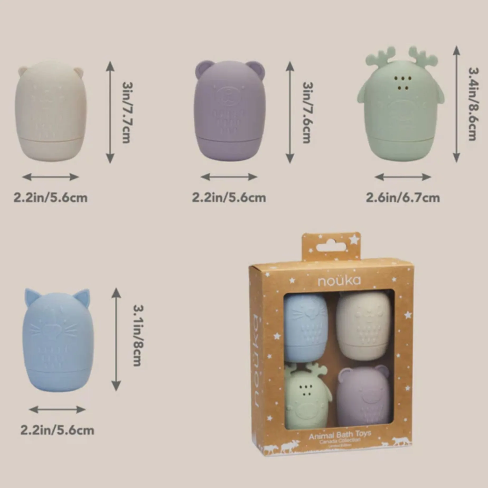 Bath time adventures await with noüka’s Silicone Animal Bath Toys. Squeeze them to fill up with water and squirt for bath time fun. Detachable pieces come apart for easy cleaning and to prevent mold. Made from soft and flexible food grade silicone, our Animal Bath Toys are durable and long-lasting. Both little ones and parents will love the adorable animal shapes.