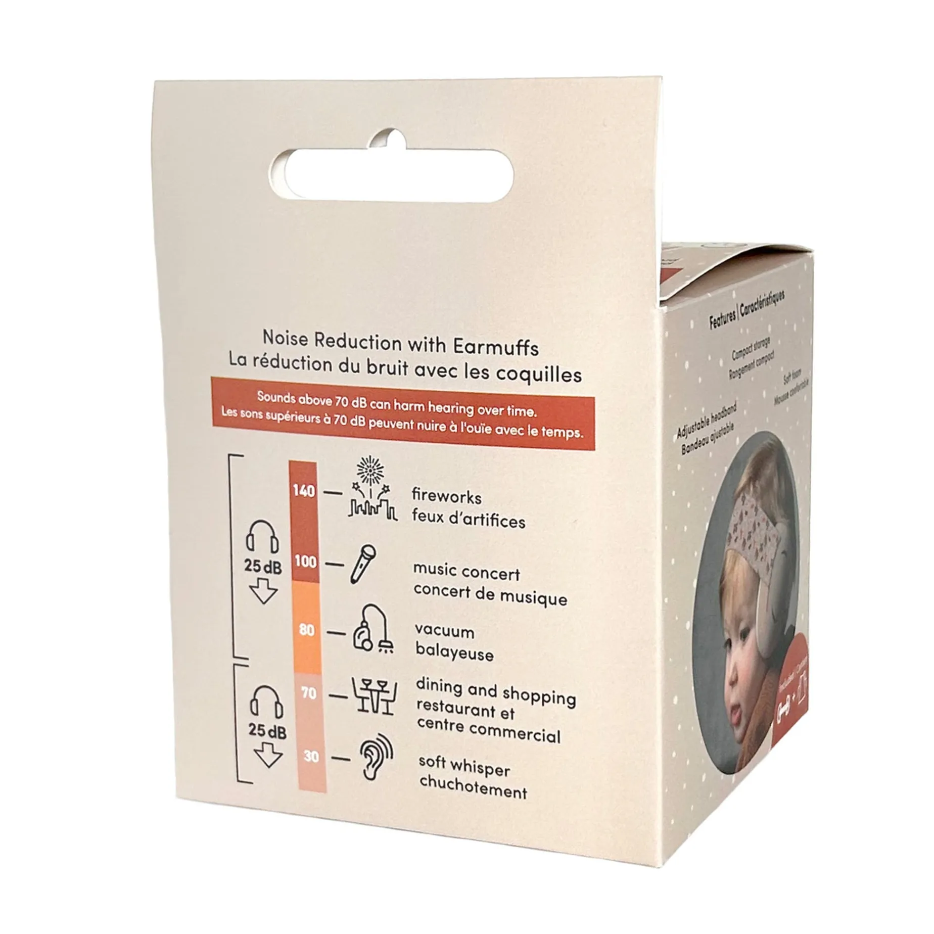 Baby protective earmuffs are ideal for protecting hearing and attenuating loud, harmful noises. Music concerts, fireworks or sporting events are all noisy environments that can damage hearing over time. The earmuffs reduce ambient sounds by 25db to protect your little ones’ ears.
