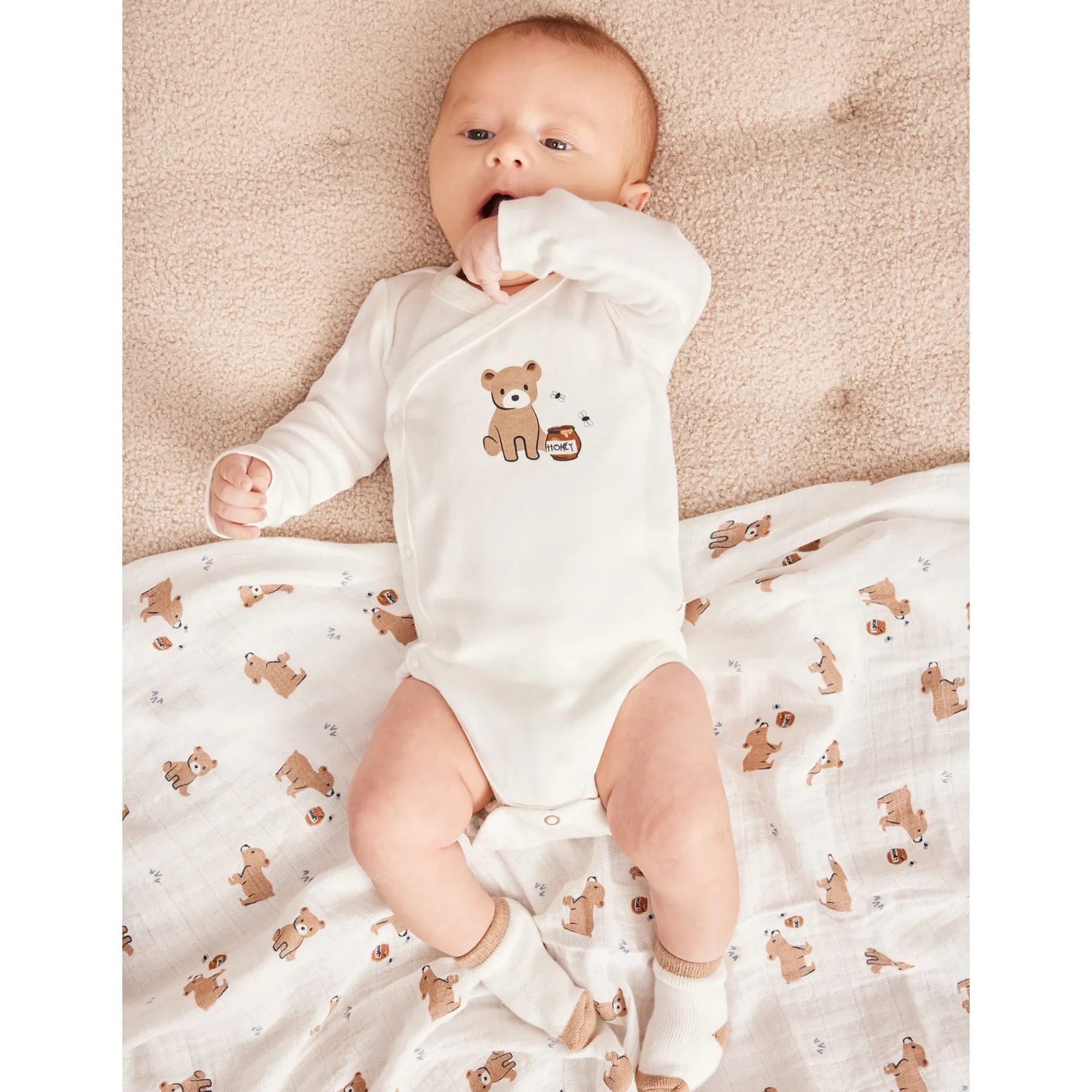 Softening over time, swaddle blankets provide comfort and warmth for little ones and are a lifesaver for you and your partner. With bear and paw prints, this two-pack coordinates perfectly with sleepwear and accessories from the same layette collection.