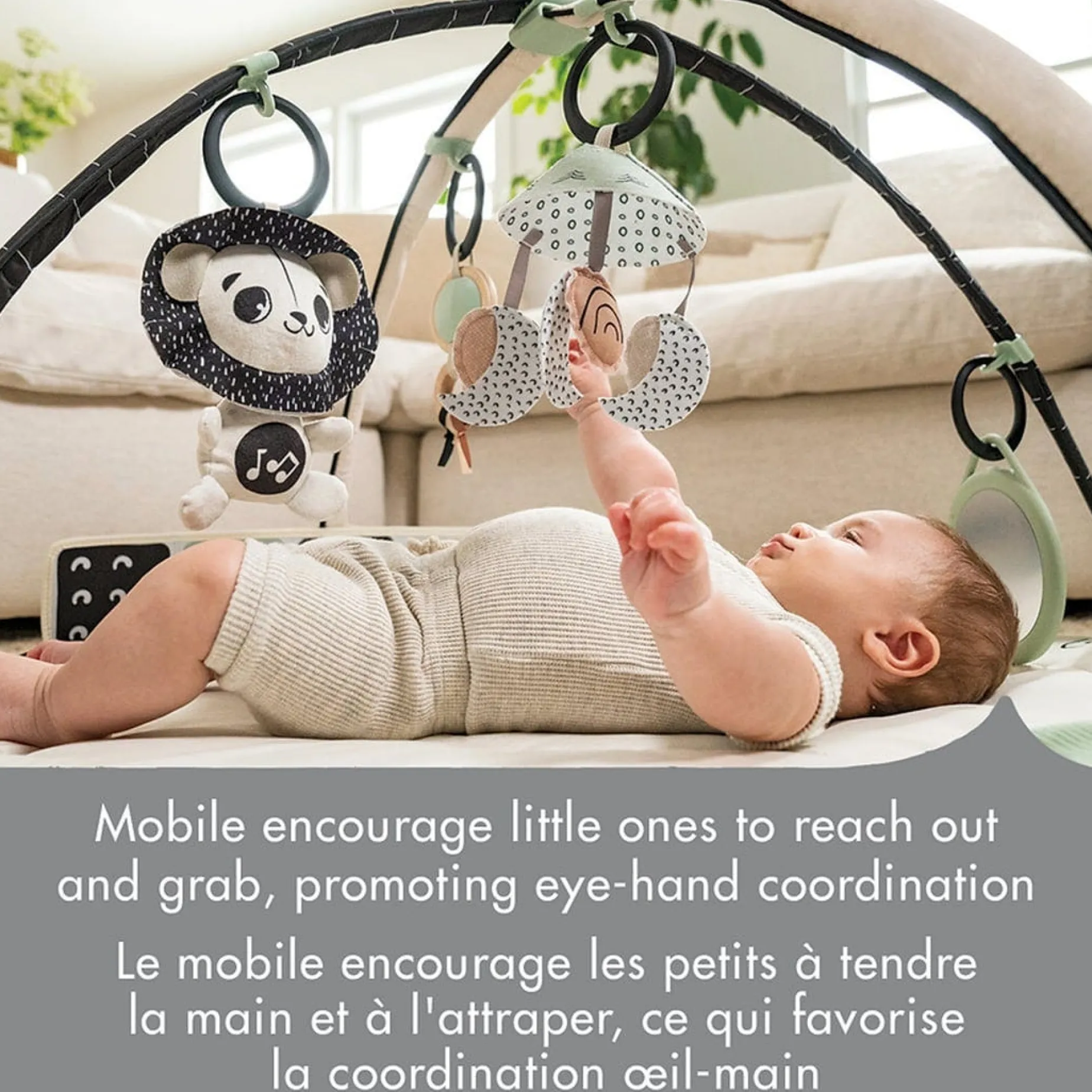 Featuring a charming responsive musical lion doll, geometric contrasting mobile, soft black and white take along book and tummy time mirror and uniquely designed with adjustable arches and sliding rings, this gymini creates an adaptable envonment for playing and bonding.
