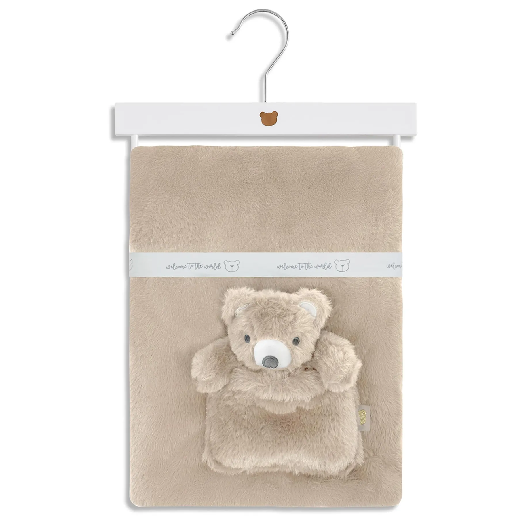 Includes a blanket and a small teddy bear