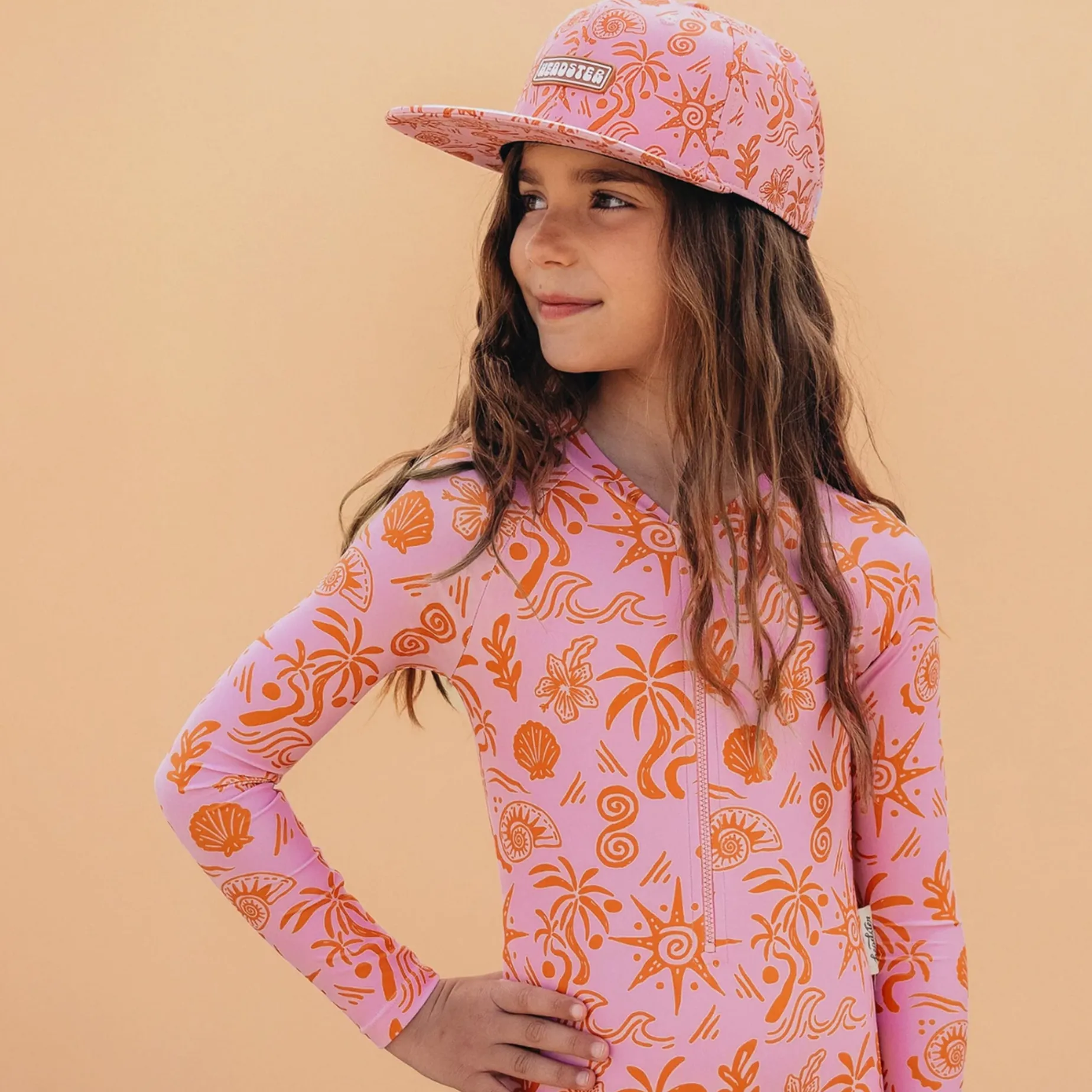 But it’s not just about function, the prints from our headwear line add a touch of personality and style to this swimsuit. Whether it’s a bold and vibrant pattern, a playful animal motif, or a funky geometric design, your little one will make waves with their fashion-forward swimwear.