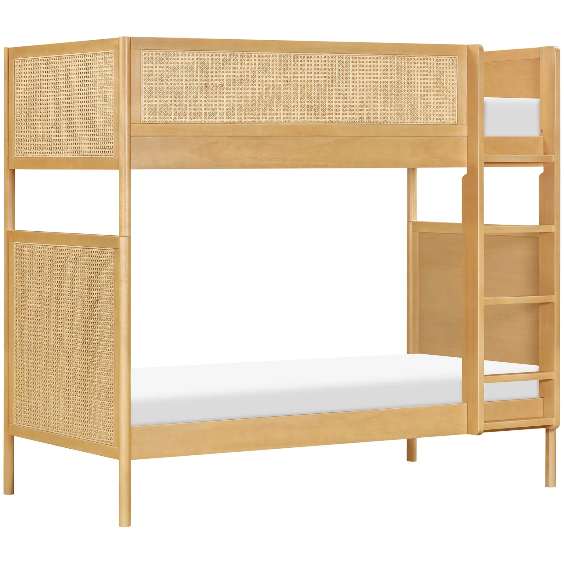 The Bondi Cane Convertible Bunk Bed brings warmth and natural texture to your kiddo’s room with detailed cane paneling and a sleek silhouette. Designed for flexibility, the bunk bed ladder can be positioned on either side to suit your space, and when it’s time for a change, this bunk easily converts into two twin beds. Whether stacked or side-by-side, the Bondi Cane Convertible Bunk Bed is built to grow with your family. Pair it with our Twin Storage Trundle Bed for fun sleepovers or extra storage.