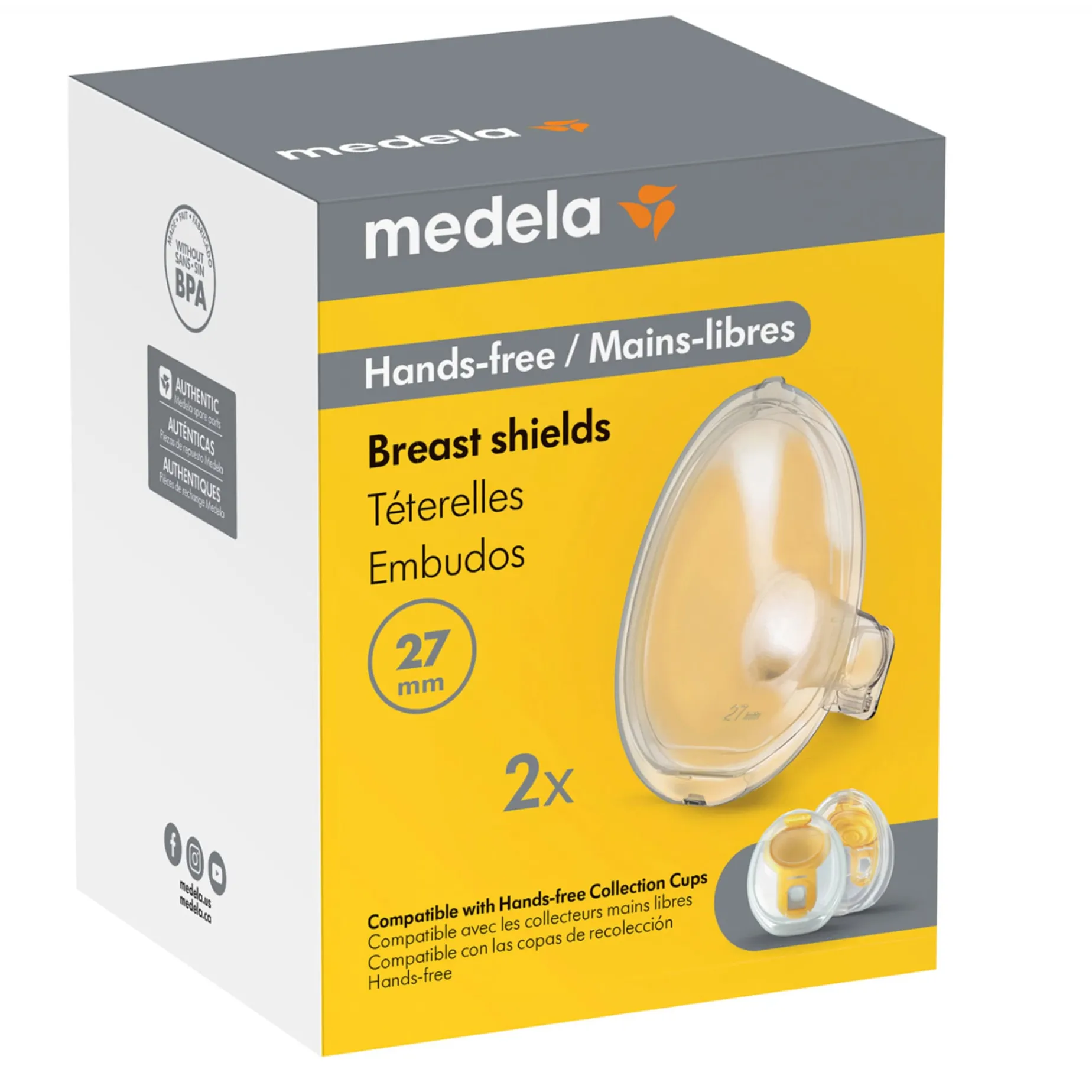 This set includes 2 breast shields that work with Medela’s hands-free breast shields. Made from BPA-free materials, these comfortable breast shields are designed to be compatible with Medela breast pumps with hands-free breast shields. sold separately