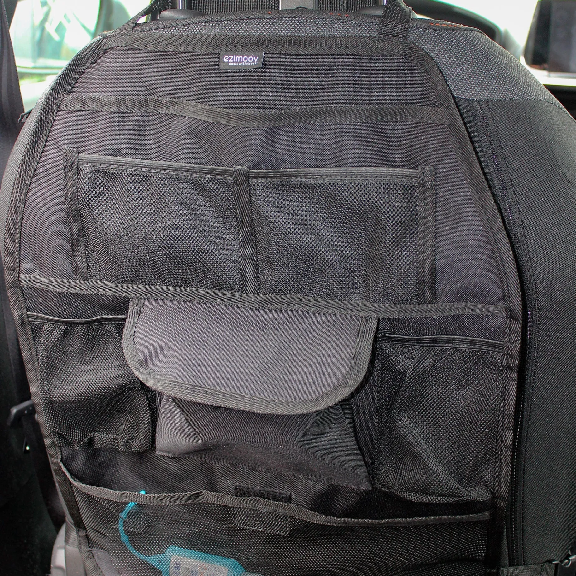 EZI TRAVEL PLUS is a large capacity seat organizer for cars. Have a perfect organization in your car. Each item will find its place in the different pockets of your organizer.