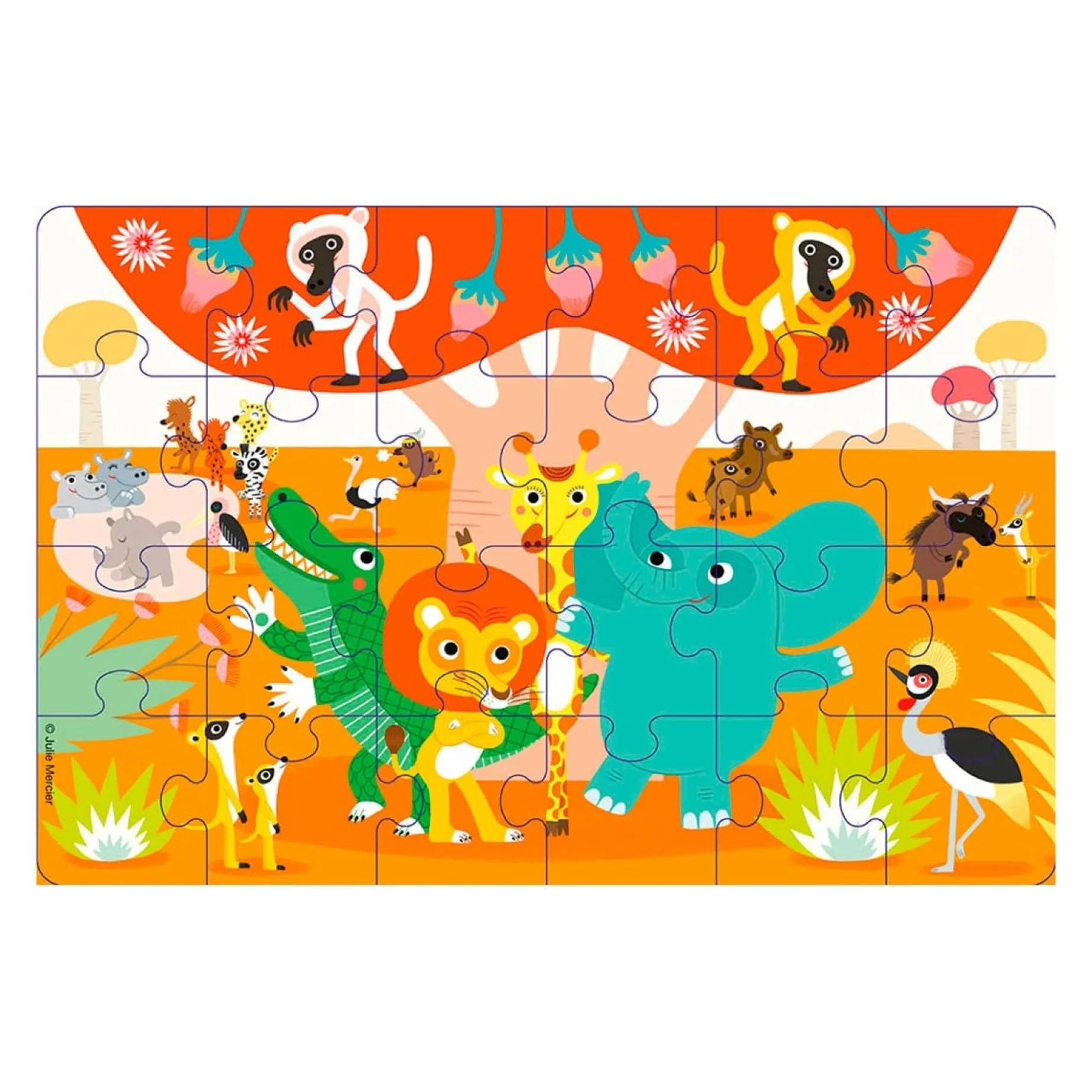 A 24-piece puzzle and 4 animals of 4 pieces to assemble. From 3 to 5 years old.