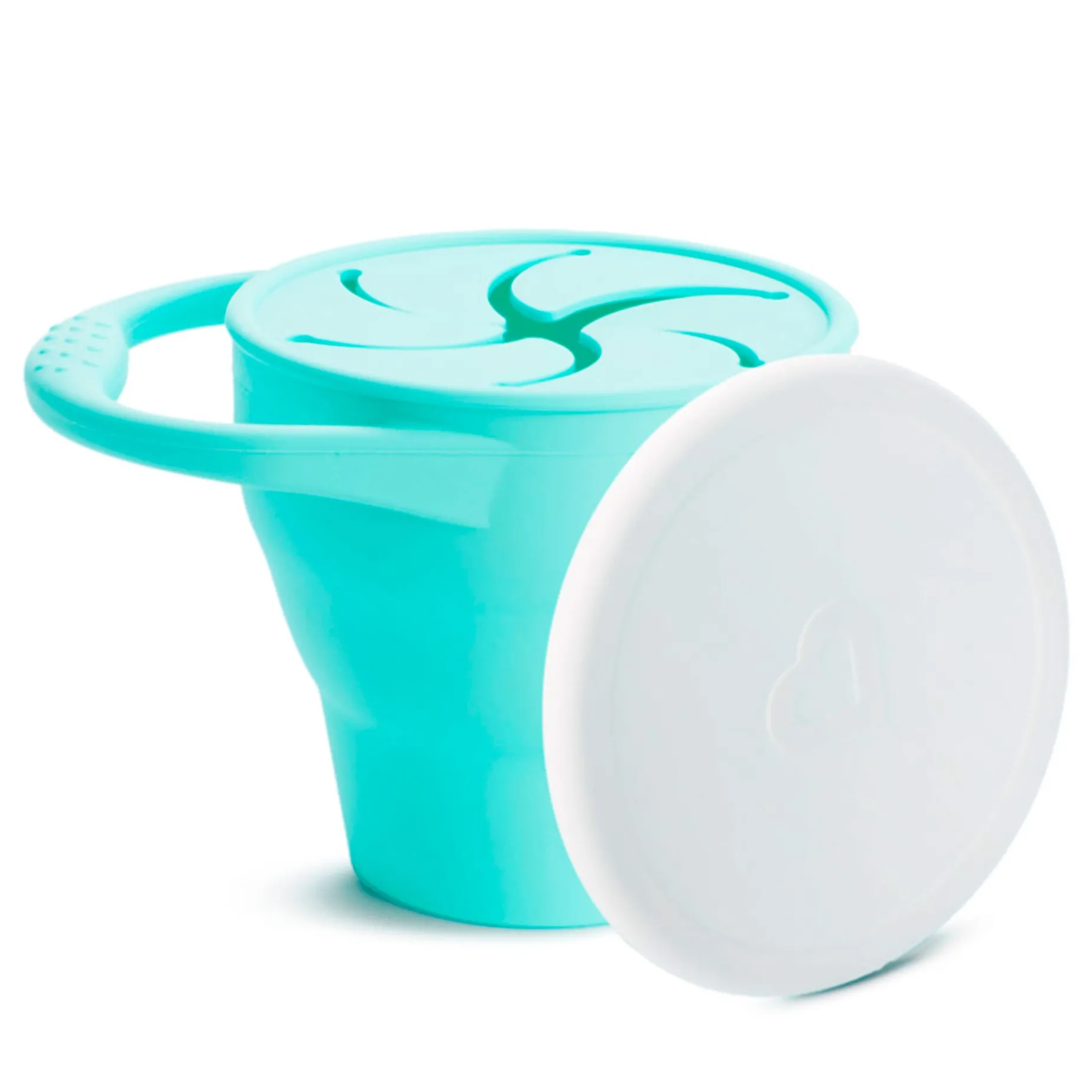 Meet the C’est Silicone!™ Snack Catcher. Made of 100% food-grade silicone, it’s just the right size, soft on small hands and completely collapsible for storage and travel. Flexible crumb-trapping flaps and a secure handle allow toddlers to feed themselves with confidence and a lot less mess. Whether around the house or in the back seat, kids love its easy access and parents love its spill-proof design.