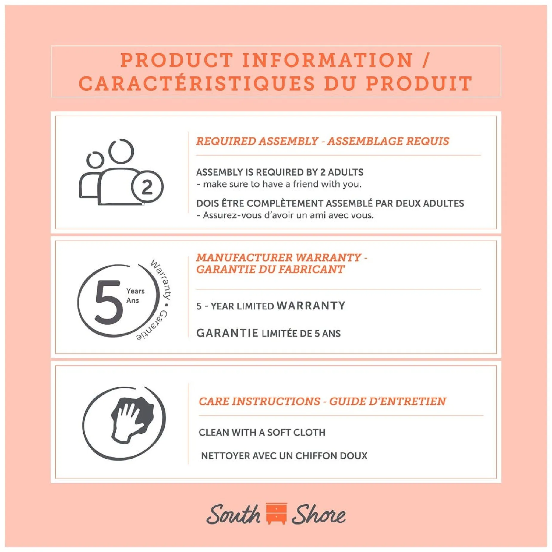 South Shore industries create furniture that adapts to today’s families since they are created by parents. Always creating new practical storage, this company never ceases to amaze us with its efficient storage as well as its advantageous prices. Whether it’s to furnish a small bedroom, a workspace, a playroom, or a bedroom for all ages, South Shore will meet your expectations.