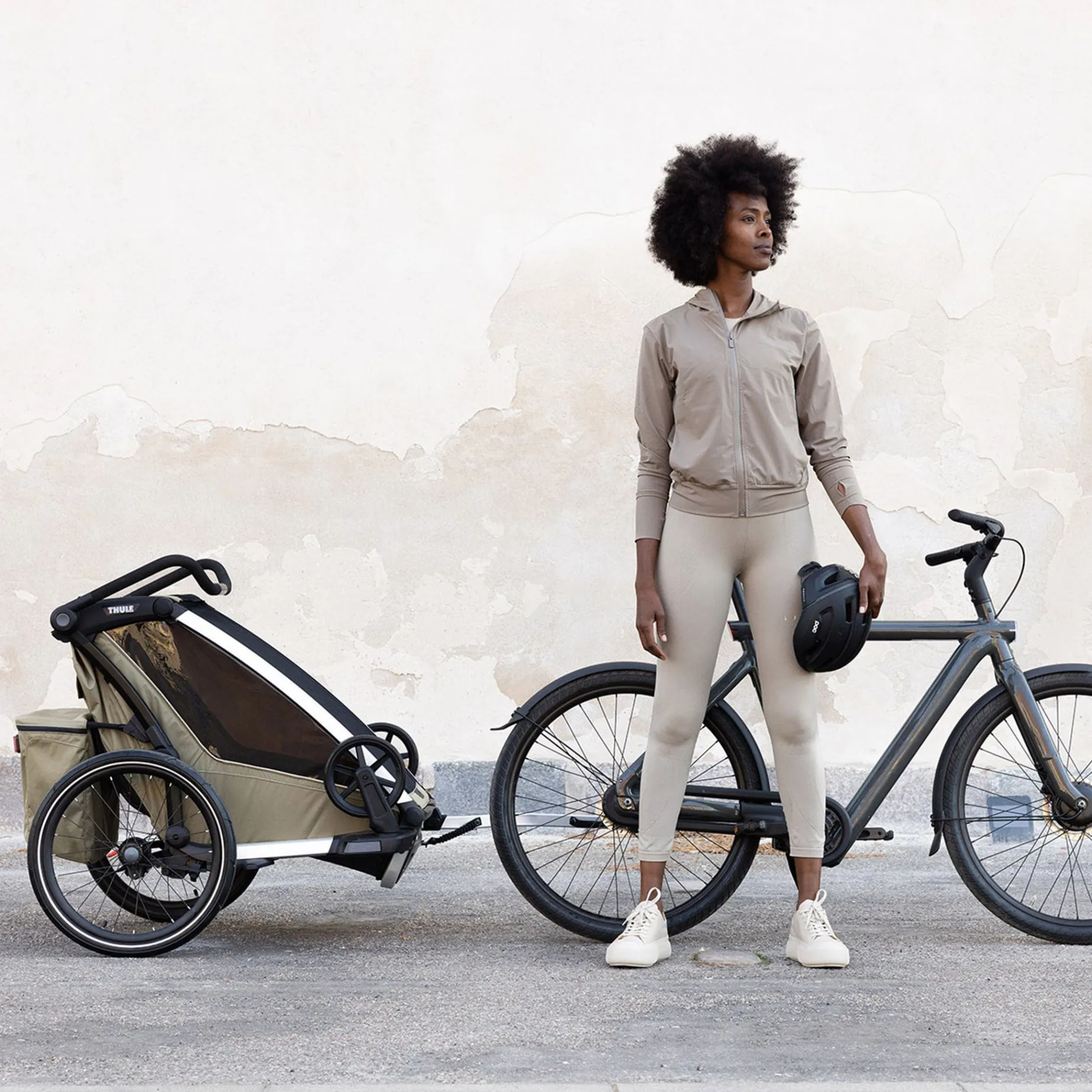 Made for daily commutes, Thule Chariot Cross 2 double is a robust and safe trailer for heavy use in all conditions. It lets you experience easy transitions between cycling and strolling – a quick, one-handed wheel rotation turns the bike trailer into a stroller in seconds.