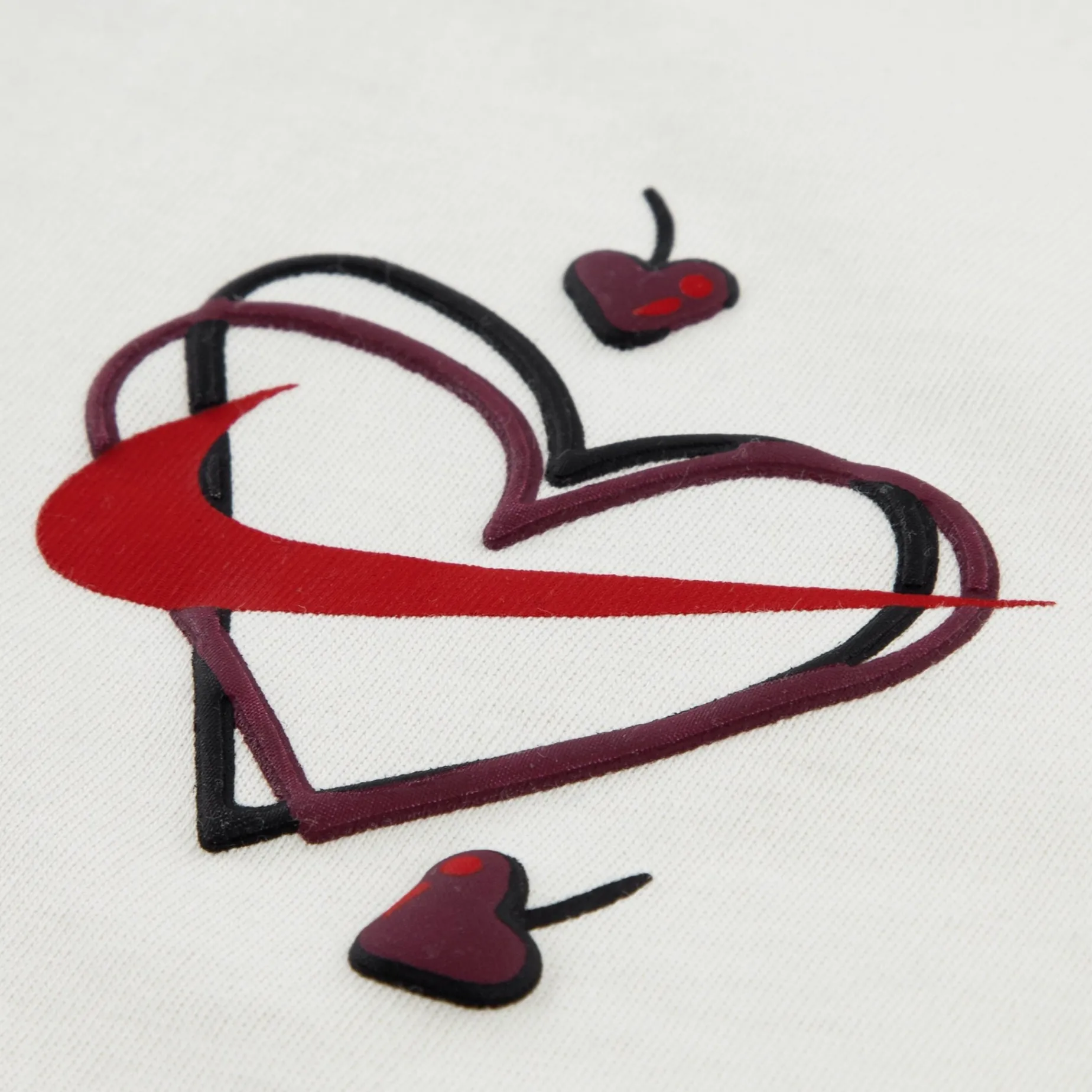 Tee: Cotton/poly jersey knit fabric. Tagless ribbed crewneck. Short sleeves. Small heart logo graphic.