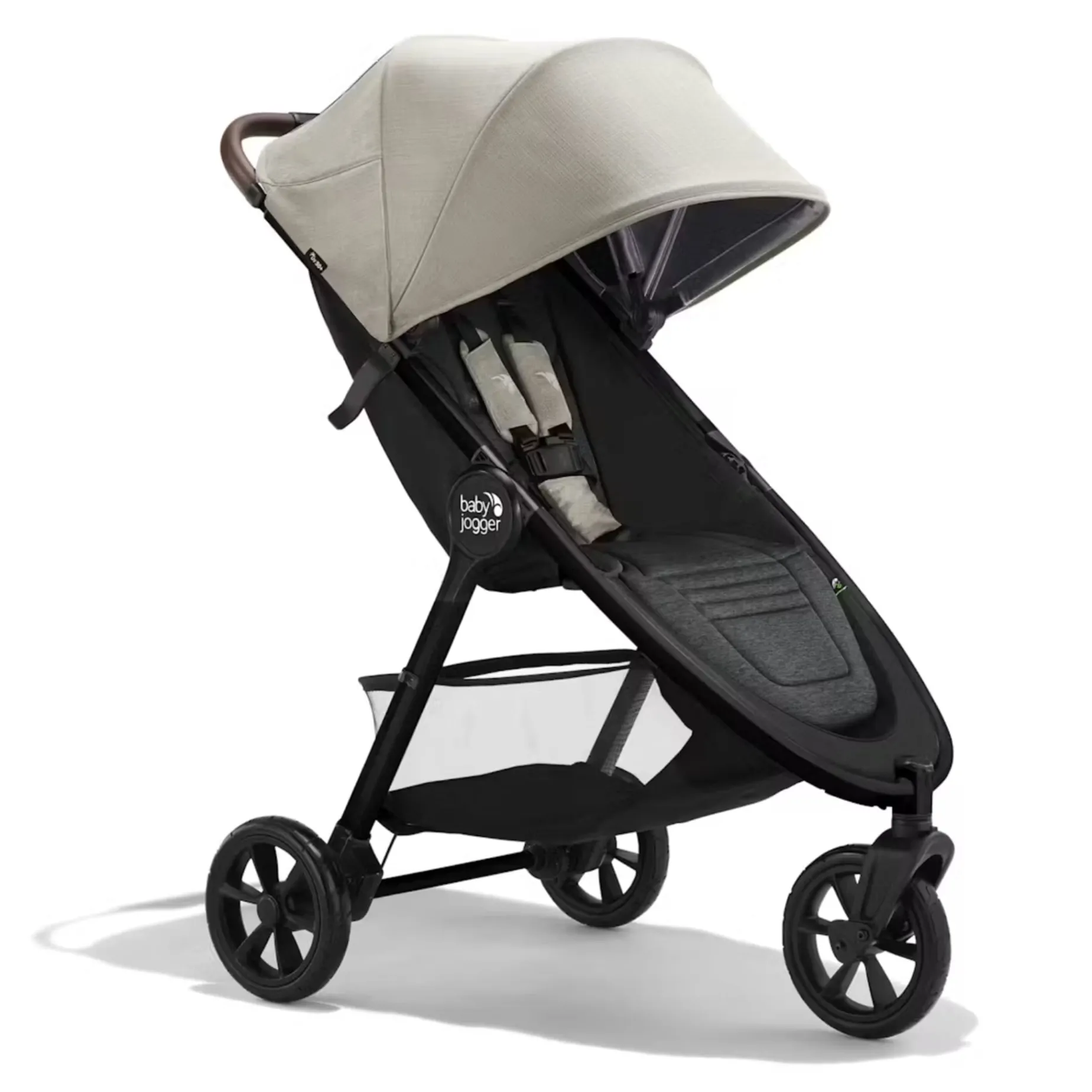 Durability tested. Premium design. One-hand fold. The Baby Jogger® city mini® GT3 stroller is built to adventure off the beaten path. Made to conquer city streets and forest trails, the forever air rubber tires and all-wheel suspension let you push the boundaries on your adventures. The signature one-hand, in-seat fold keeps you on the go and enables you and your mini to Adventure Together. The self-standing fold allows for easy storage and helps keep the stroller clean in public places because you won’t have to lay it down. Experience a premium push with a height-adjustable leatherette handlebar, magnetic buckle, and a spacious storage basket. As your kid grows taller, adjust the harness straps by simply pulling up and positioning them at the next level. Let your little one get comfortable with adjustable calf support and a near-flat reclining seat with the pull of a tab. When your rider wants to sit up, simply push the back of the stroller seat to the upright position—no unnecessary straps or steps. The functional canopy offers three ventilation panels with magnetic closures, so you don’t have to wake up your rider when checking on them. The included infant car seat adapters are compatible with all Baby Jogger and Graco® infant car seats to make your own travel system. Because it is part of the Baby Jogger eco collection, this stroller features soft fabrics made with recycled materials.