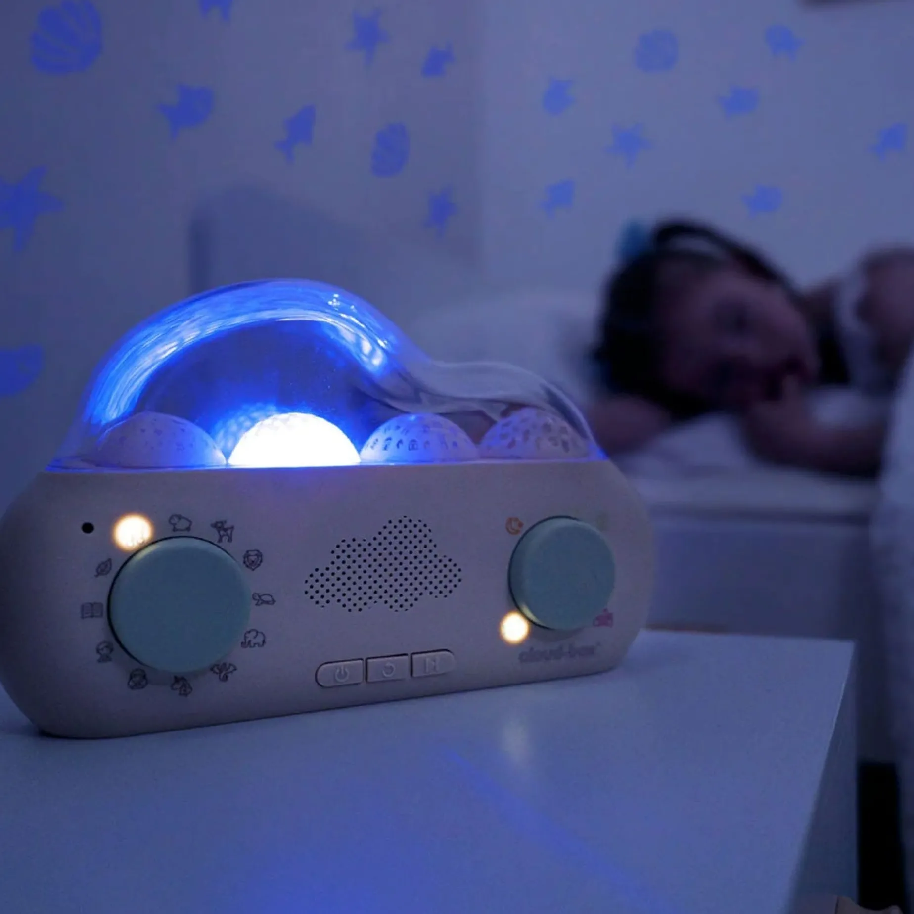 The unique storyteller which combines stories, sounds and light projections! CloudBox™ is both a storyteller and projection nightlight, and can be enjoyed by children aged 0-8.