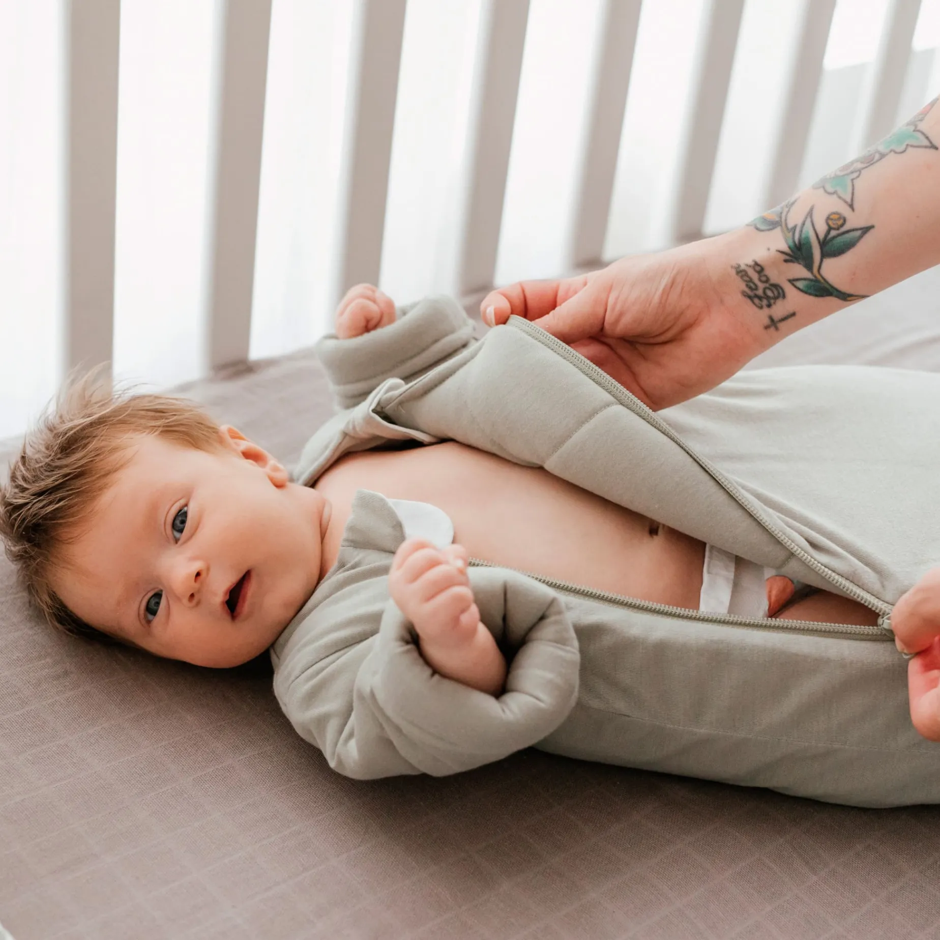 Generally, babies are ready to move away from swaddling when they begin to show a desire for greater mobility while still needing a safe and cozy sleep space… And that’s usually where the sleepsuit comes in!