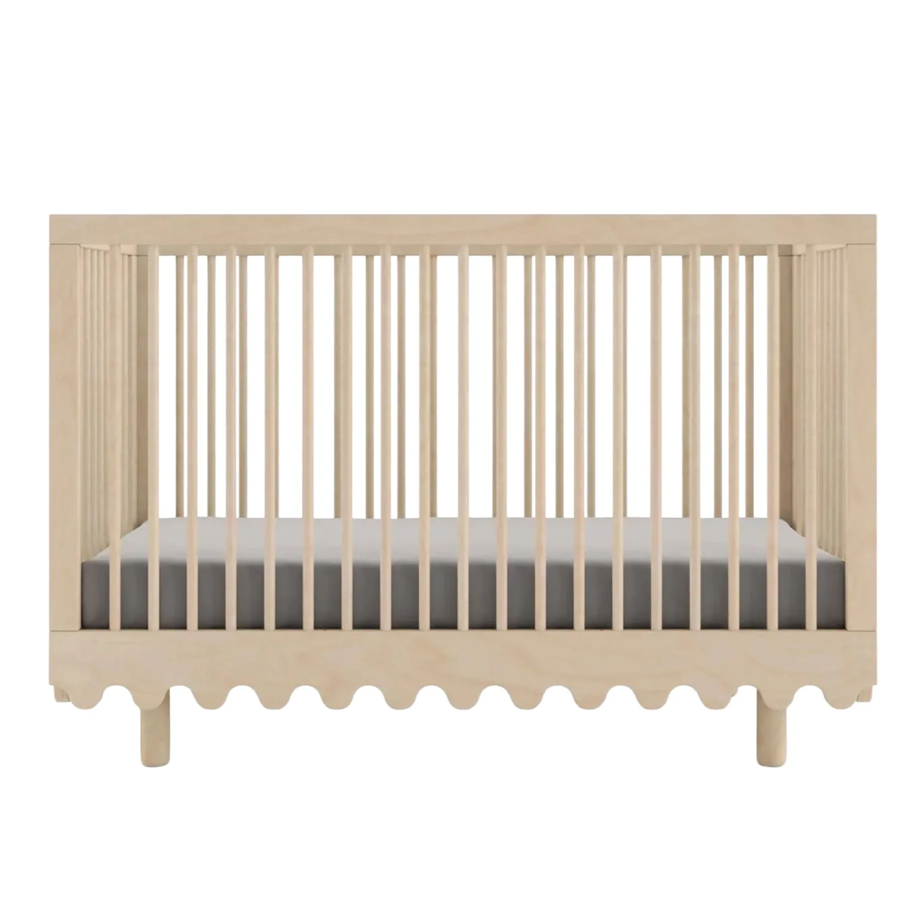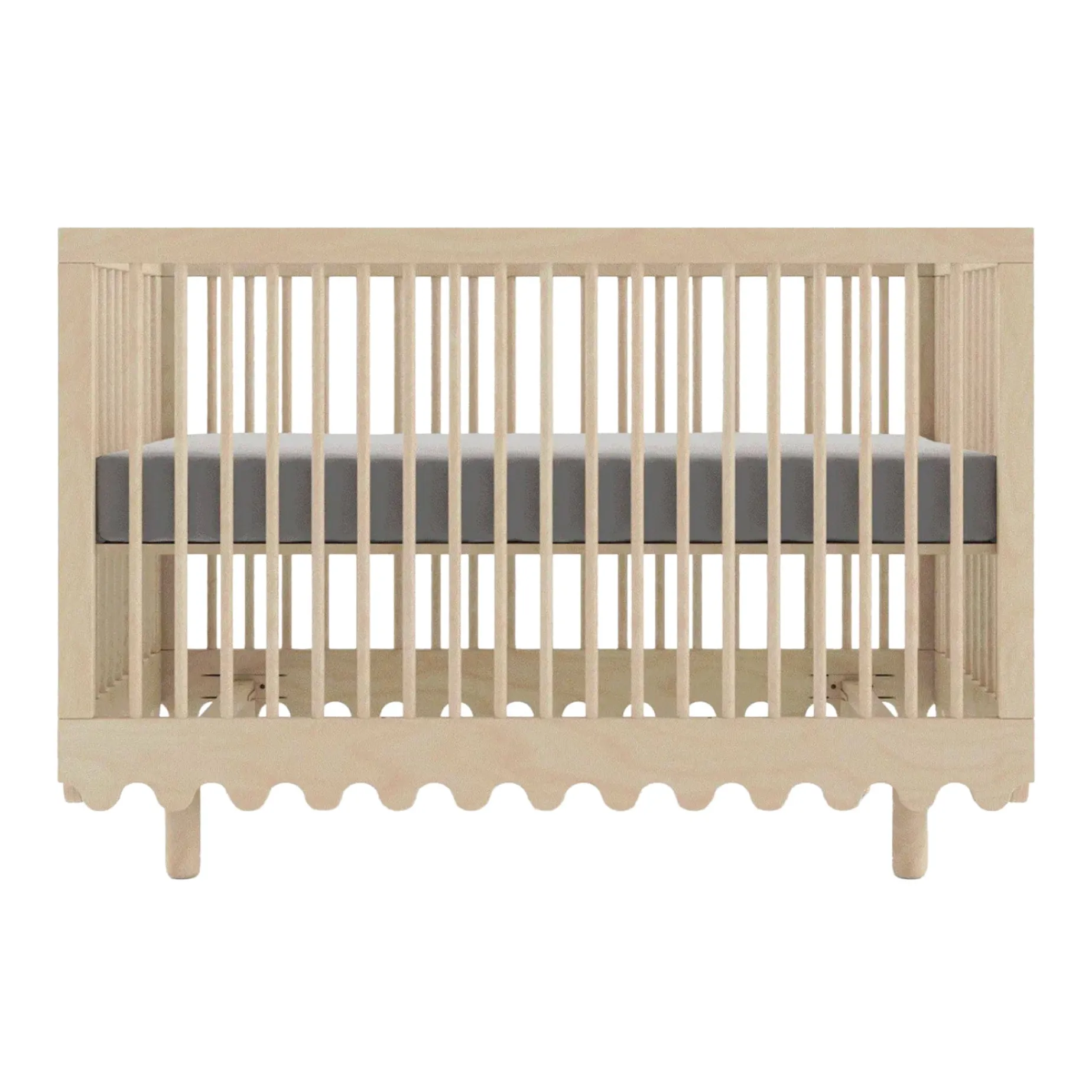 Les quatre côtés du lit sont équipés de barreaux ronds ouverts et aérés, offrant à la fois sécurité et visibilité. Le lit se convertit facilement en lit pour tout-petit en retirant et en remplaçant un côté grâce au kit de conversion Oeuf Moss, vendu séparément.