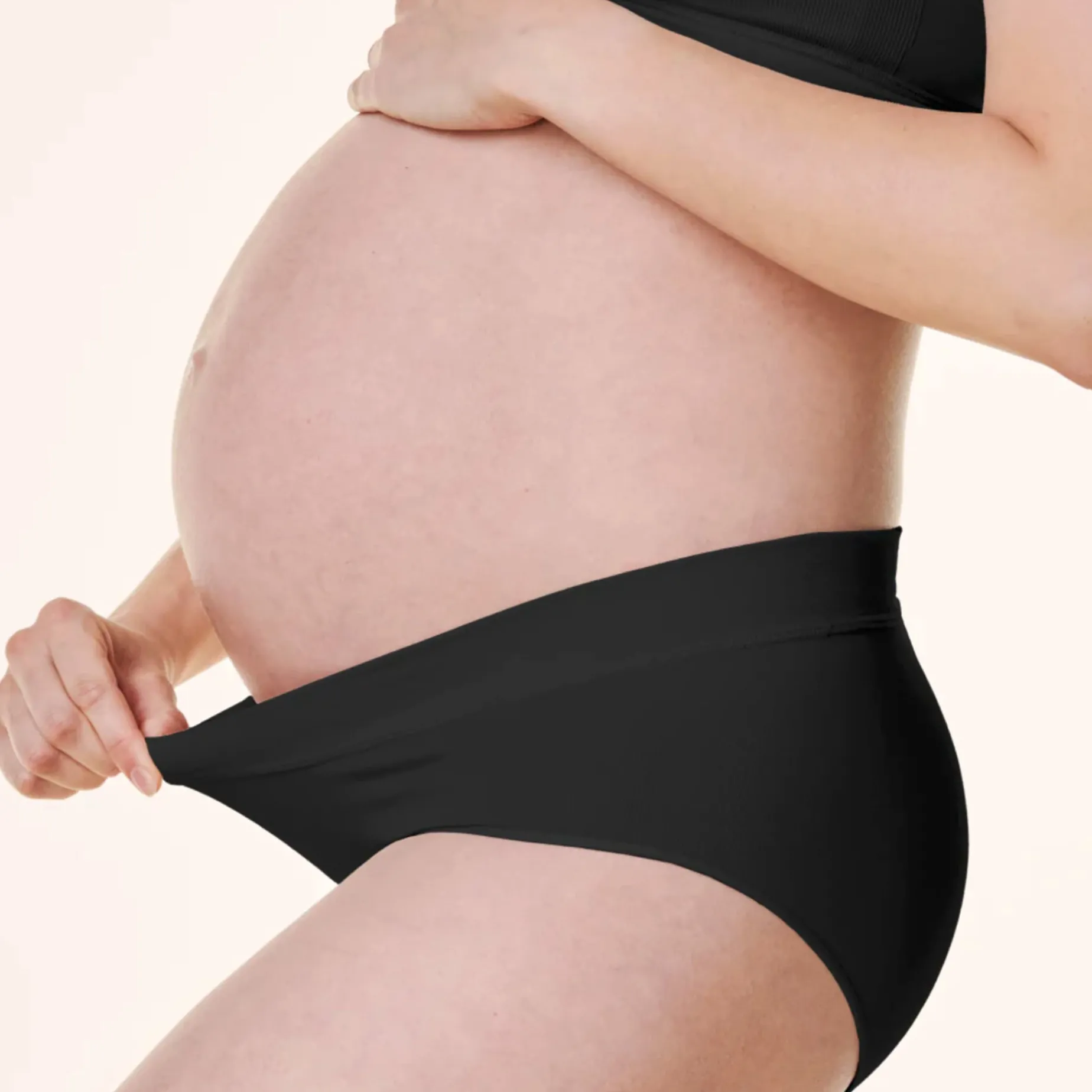 -Mid-rise with crossover front accommodates a growing belly