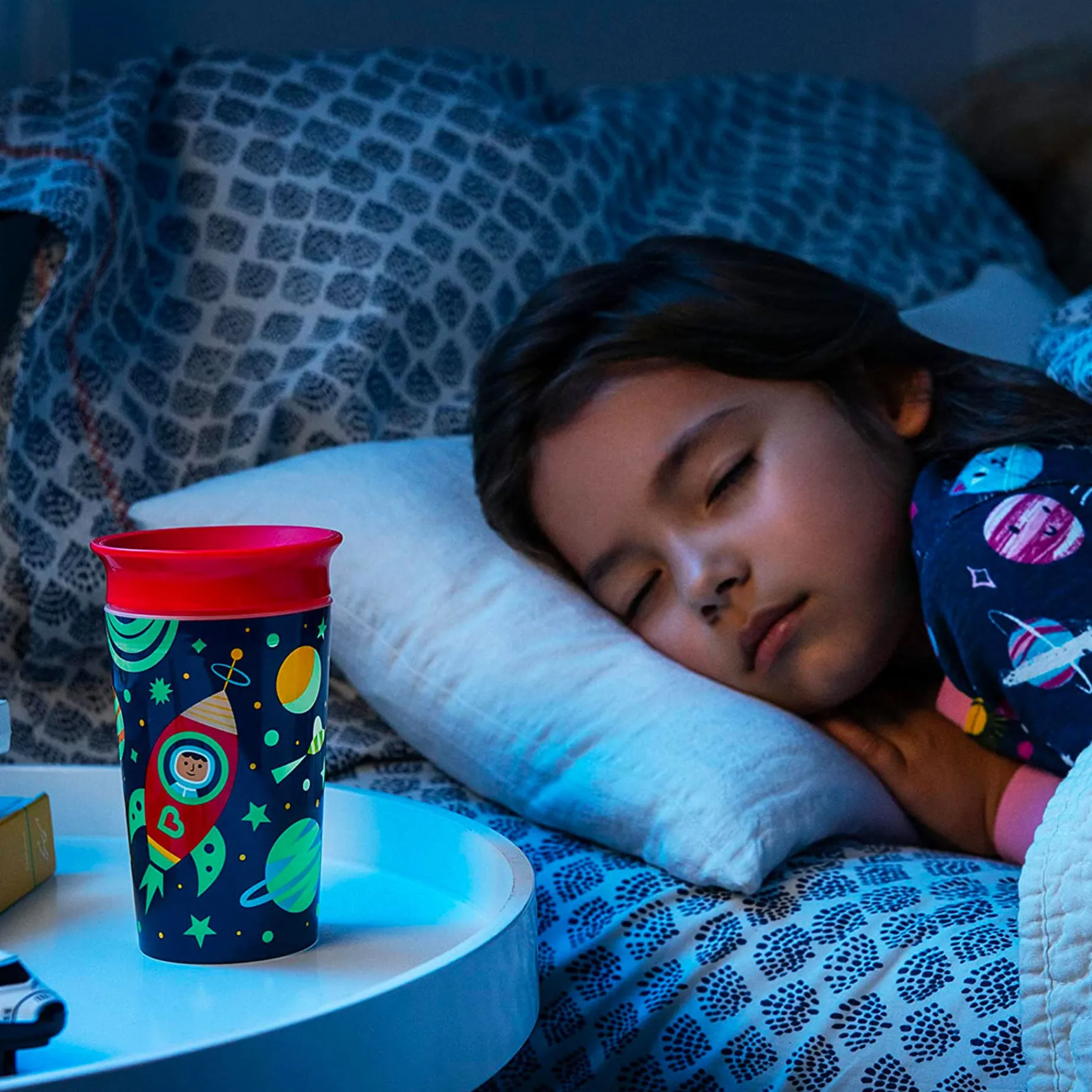 -This spill-proof cup glows in the dark, making it the perfect nighttime water cup