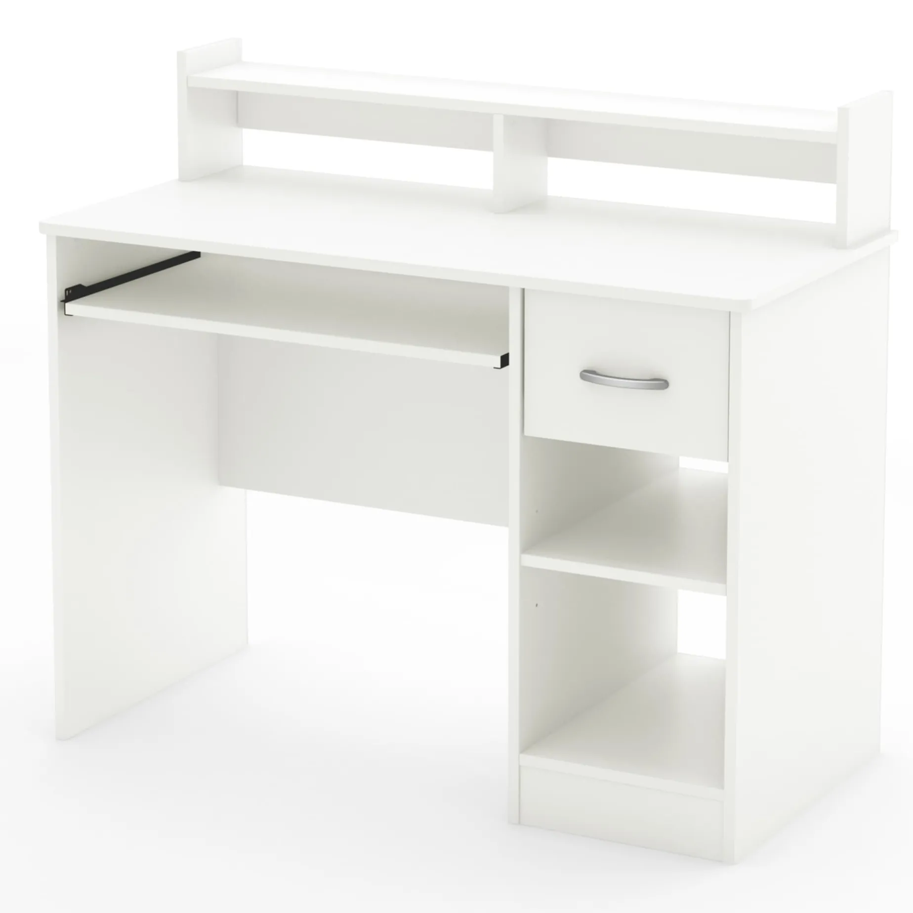 Designed to Maximize Storage This Axess Desk is the perfect answer to organizing clutter. It features a drawer and slide-out keyboard tray, plus a lower open area divided by an deep adjustable shelf. Above the desk, there’s a low hutch with a shelf. And it has a hole in the back so you can organize wires from electronics.