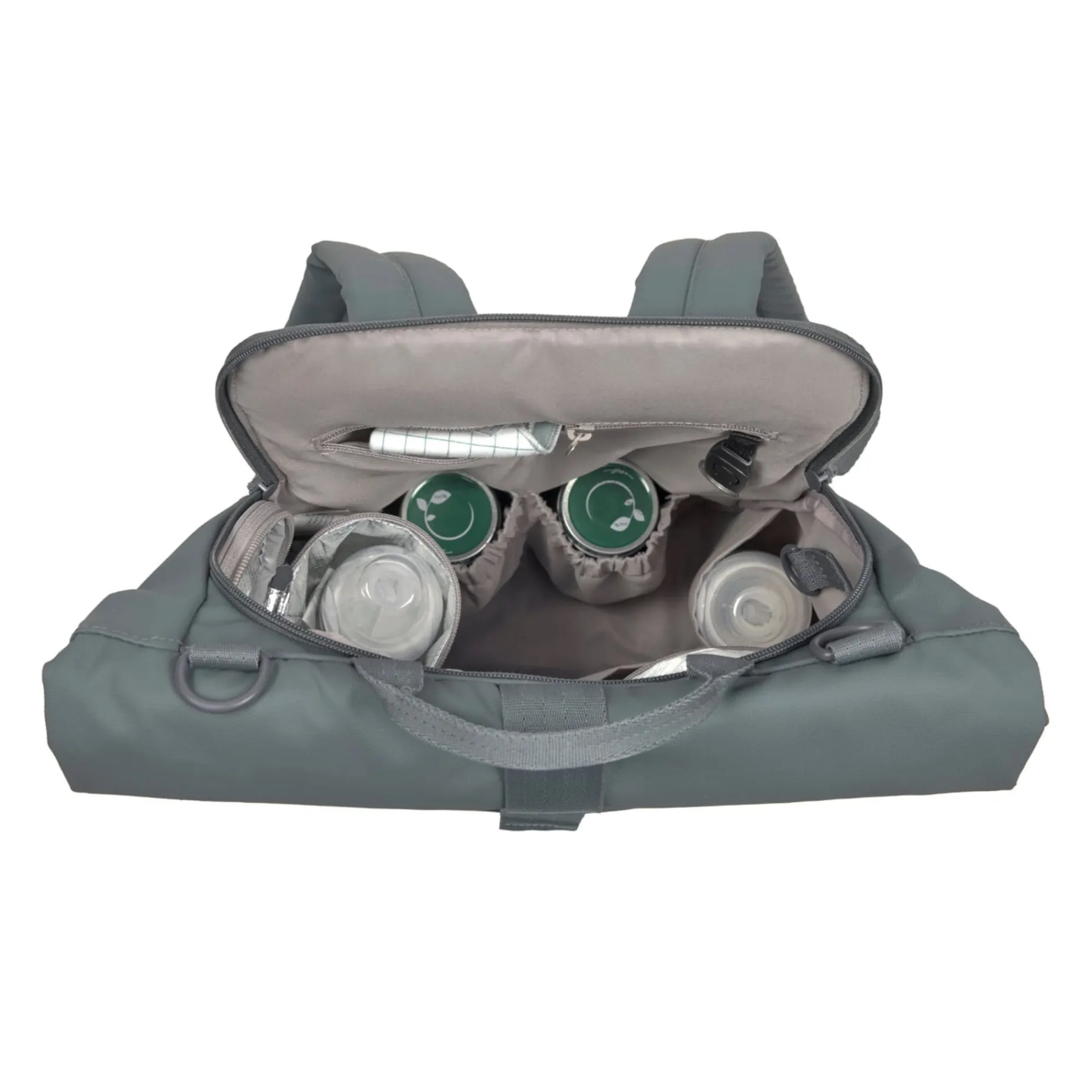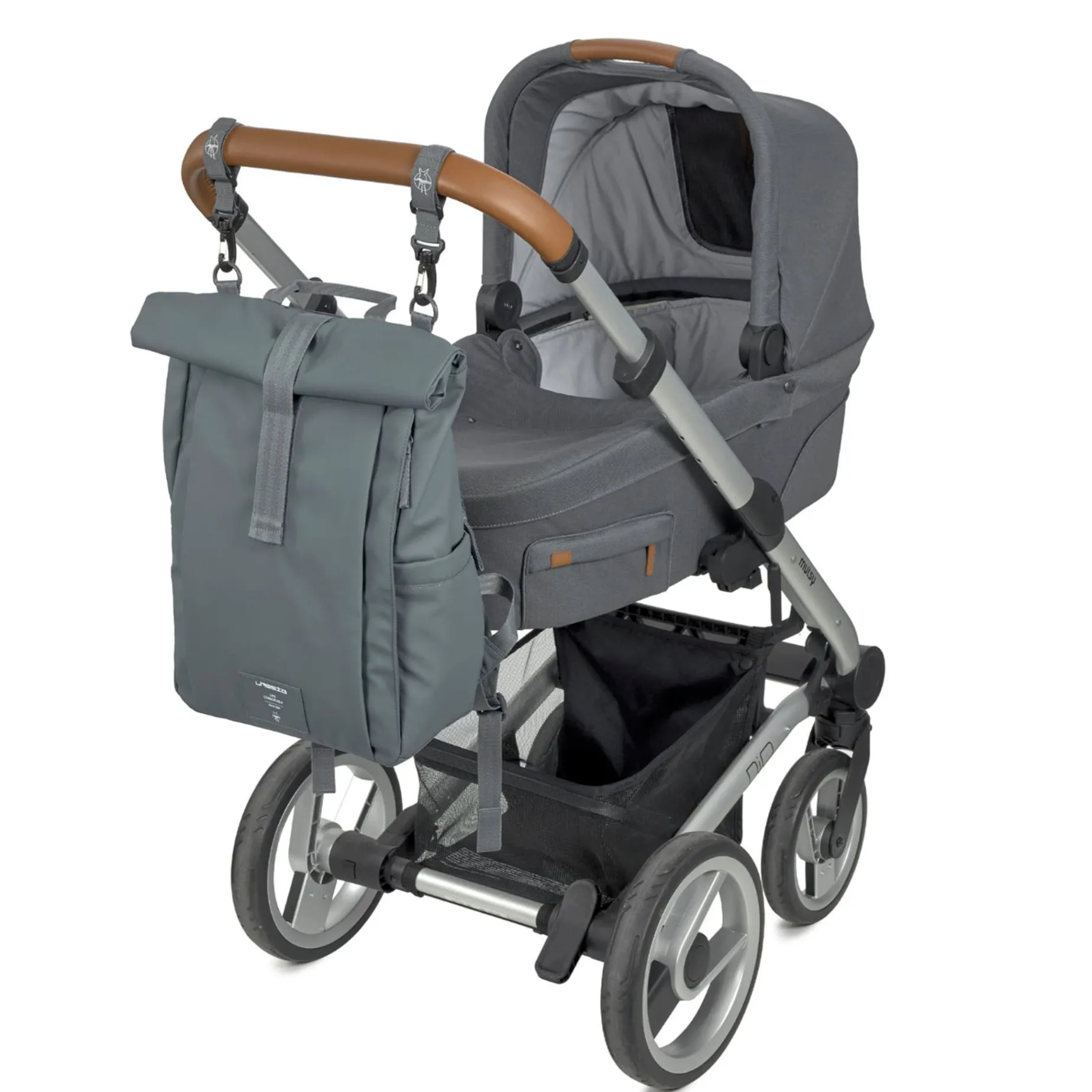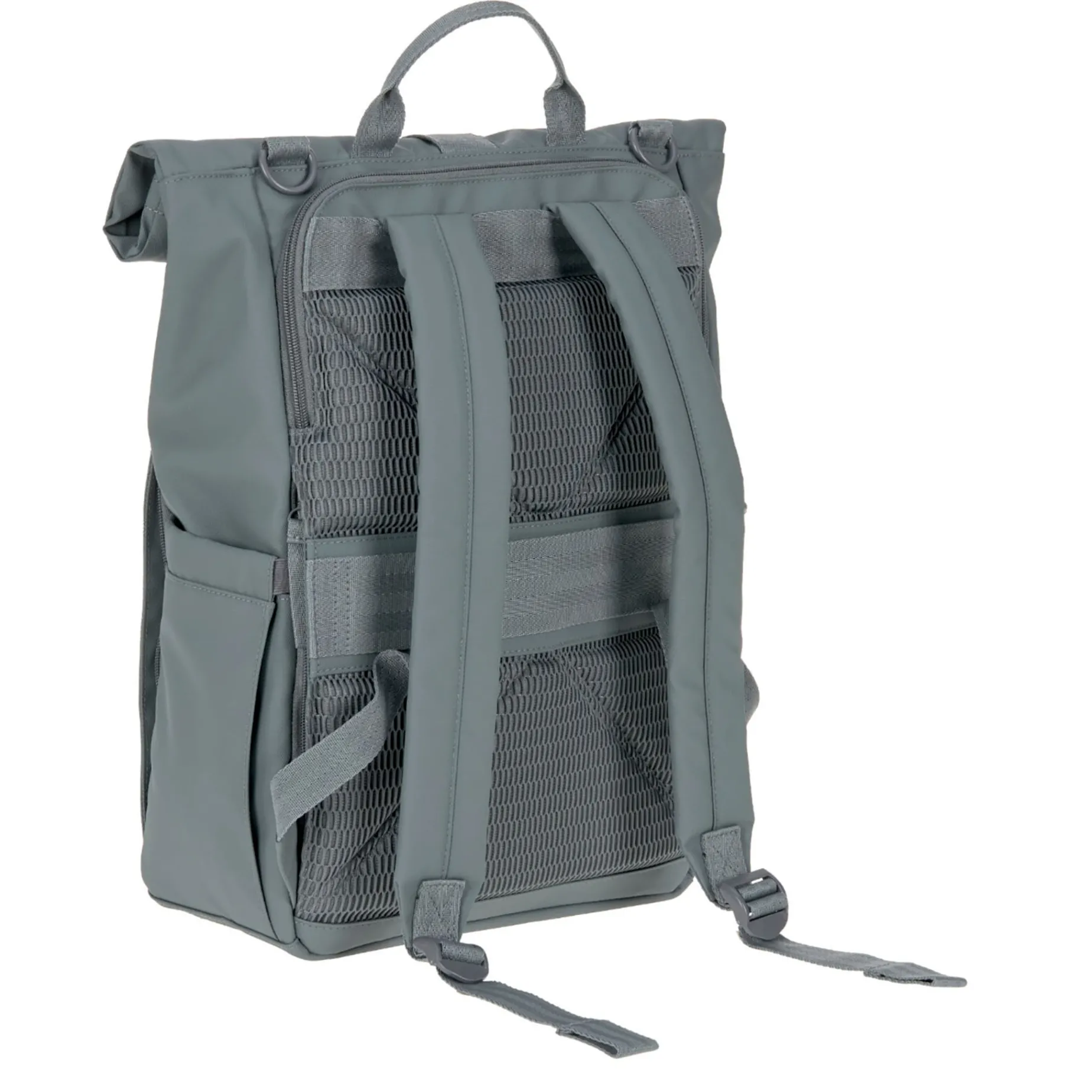 The Rolltop Up Backpack changing bag from the LÄSSIG Green Label collection impresses with its clean look, its durability, and all the extra volume.