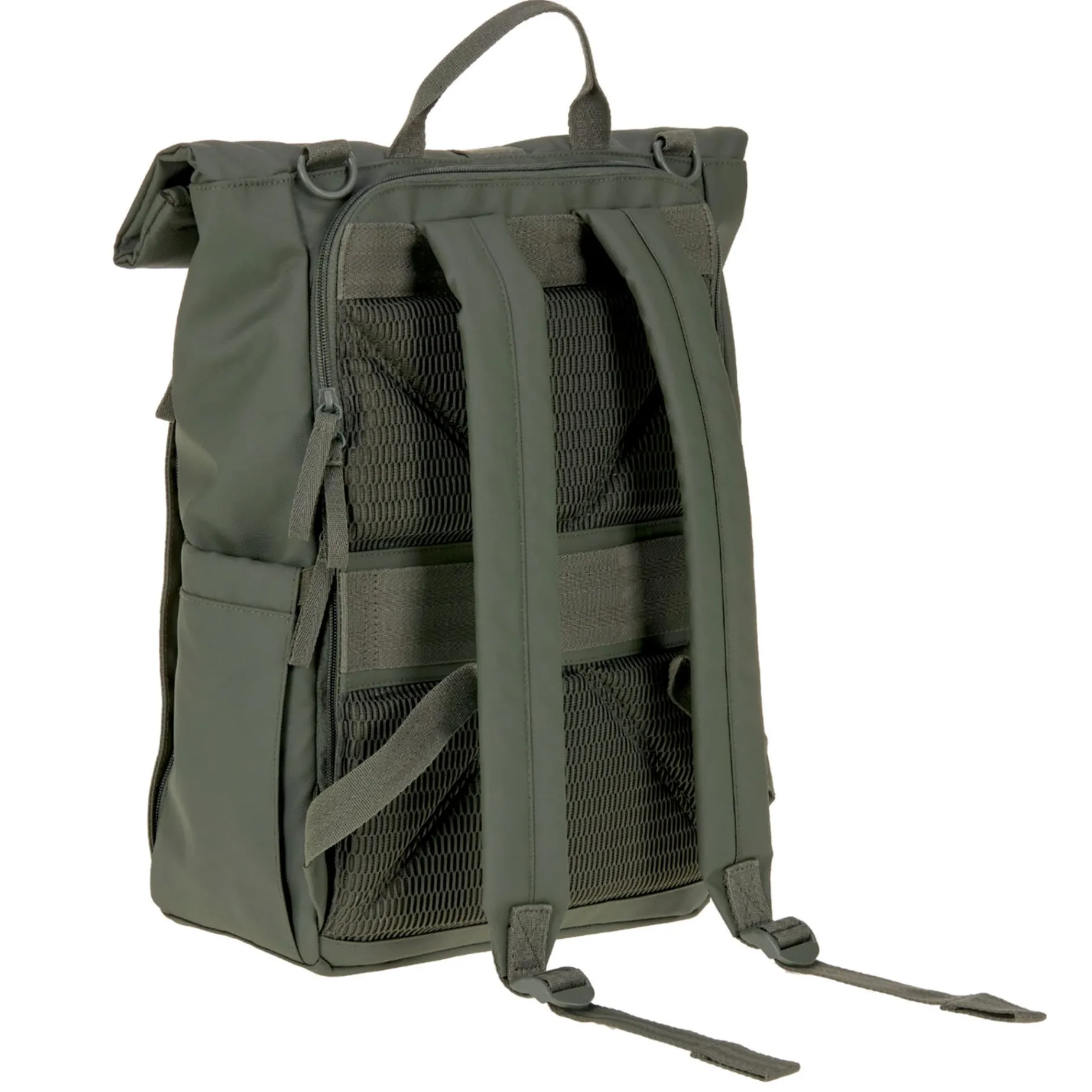 The Rolltop Up Backpack changing bag from the LÄSSIG Green Label collection impresses with its clean look, its durability, and all the extra volume.
