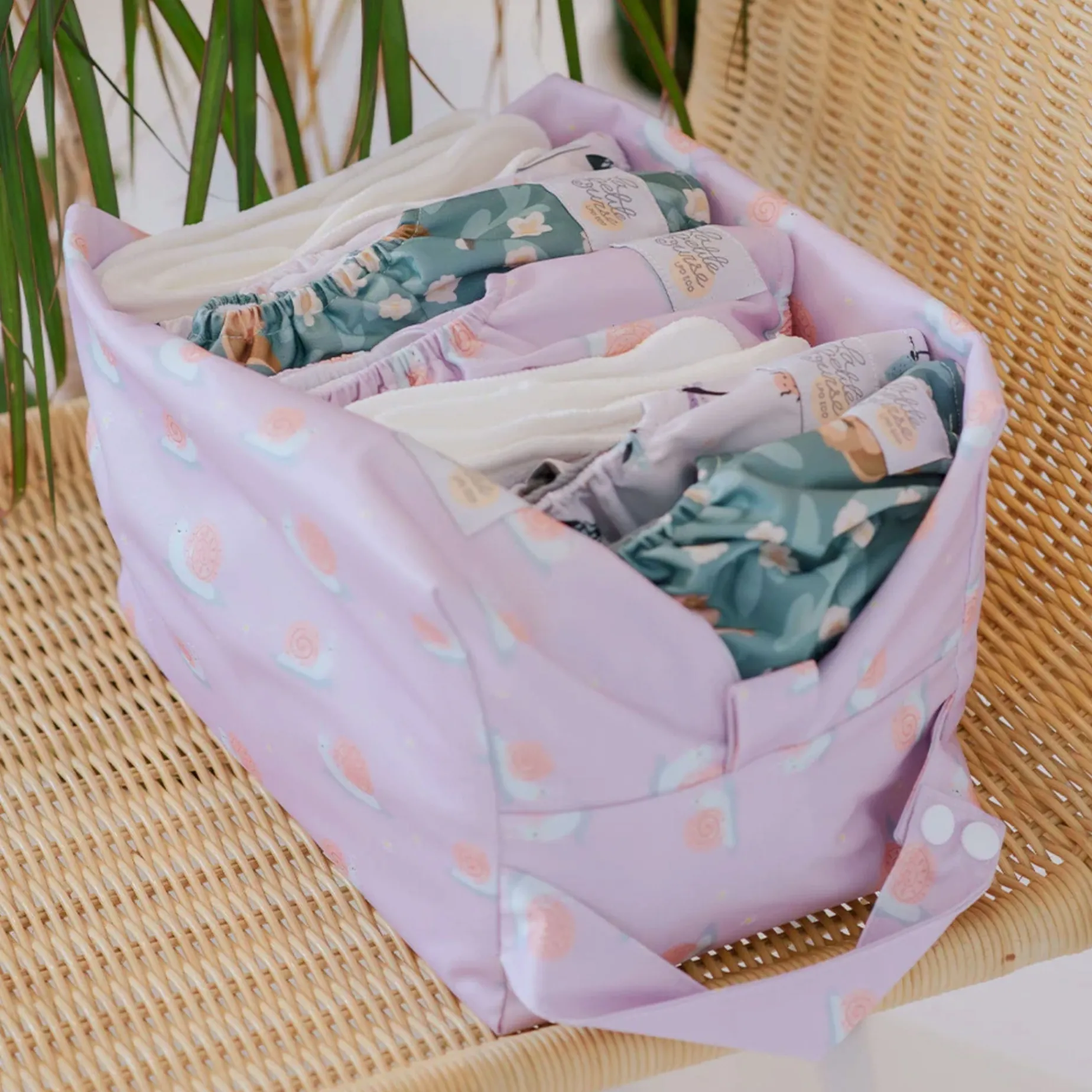 This bag can also be used as a carrier bag to store your diapers and soiled clothes. Thanks to its double layer of PUL, any mess is guaranteed to stay in the bag!