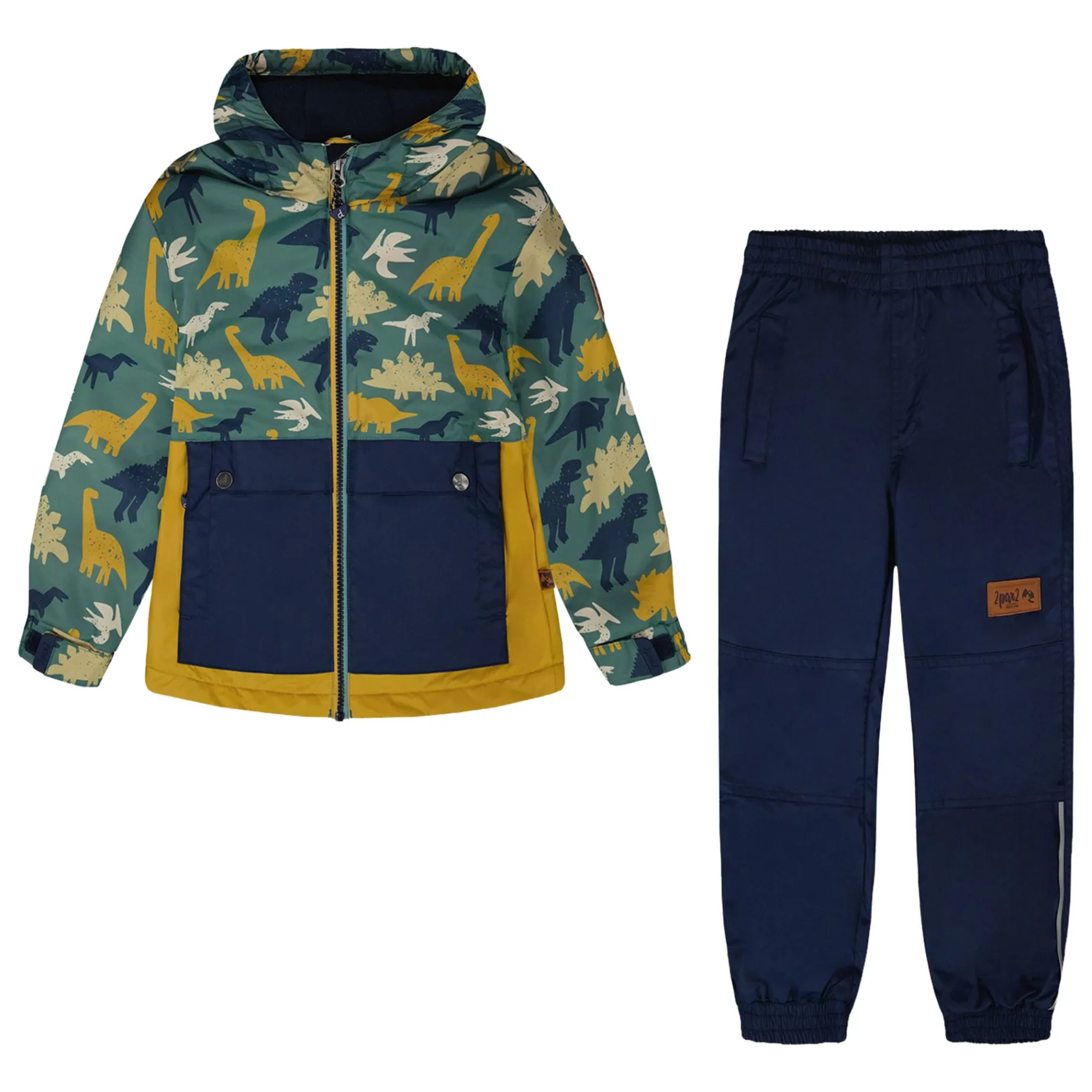 Fun and functional, this two-piece mid-season outerwear set in blue with printed smileys keeps boys warm and dry through all their outdoor adventures. Featuring an outer jacket with a polar fleece lining and matching jersey-lined pants, the set combines comfort, durability, and eco-friendly protection. The recycled fabric is treated with a fluorocarbon-free BIONIC-FINISH® ECO coating, making it water- and dirt-repellent while maintaining breathability for all-day play.