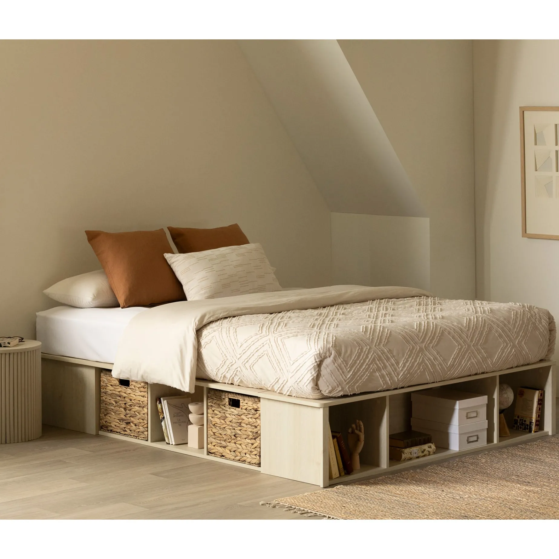 To help with organization, and offer closed storage compartments, 2 wicker baskets are included with the bed. They are designed to fit perfectly into 8 of the open spaces. This allows you to play with multiple configurations. For example, you can use the drawers to store clothes, books or shoes.