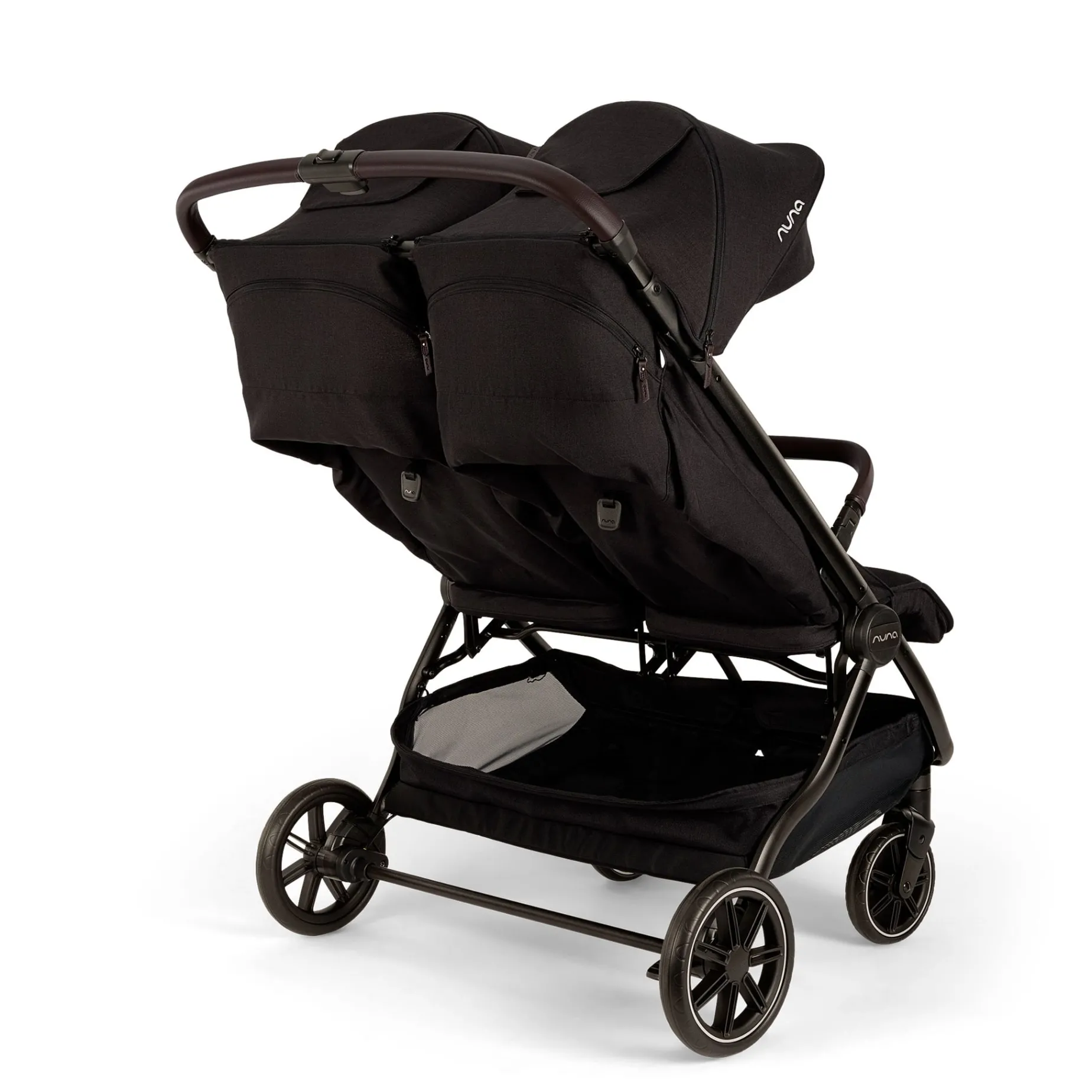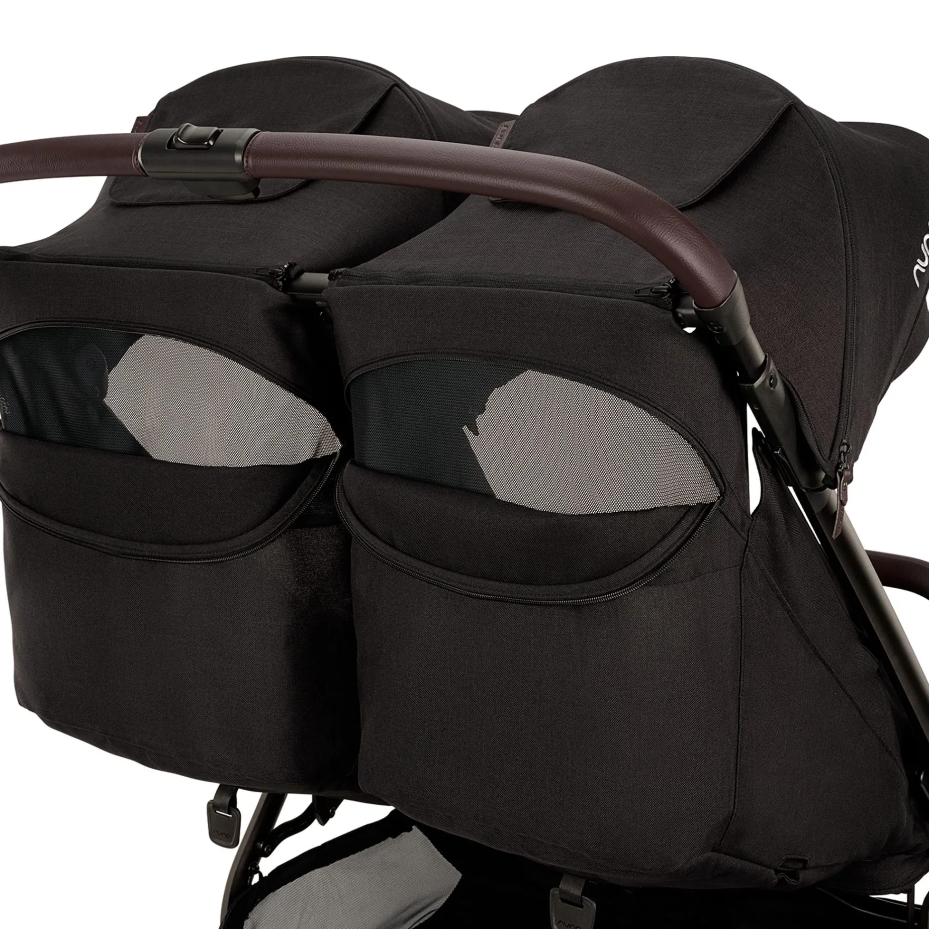 – Seats and canopies are completely independent of one another for customized strolls for two.