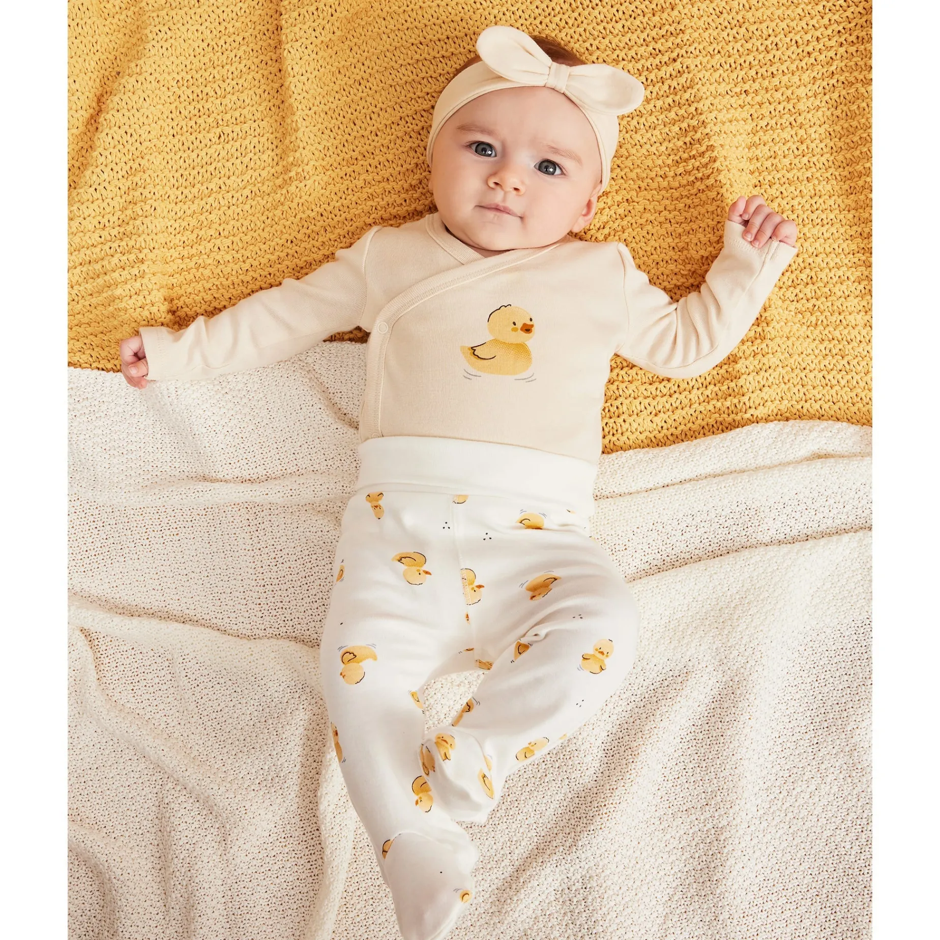 This set of 2 headbands features a neutral headband and a headband with our fresh floral pattern. Slightly elastic at the back and featuring a bow at the front, the headbands are the perfect finishing touch to any outfit from the Caneton layette collection.