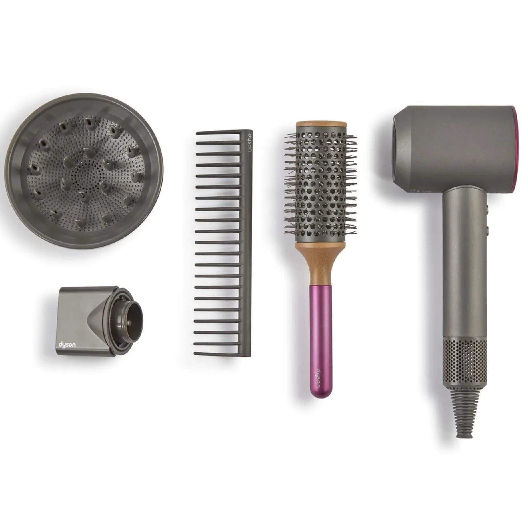 -includes: supersonic hairdryer, nozzle, diffuser, barrel brush and detangling comb.