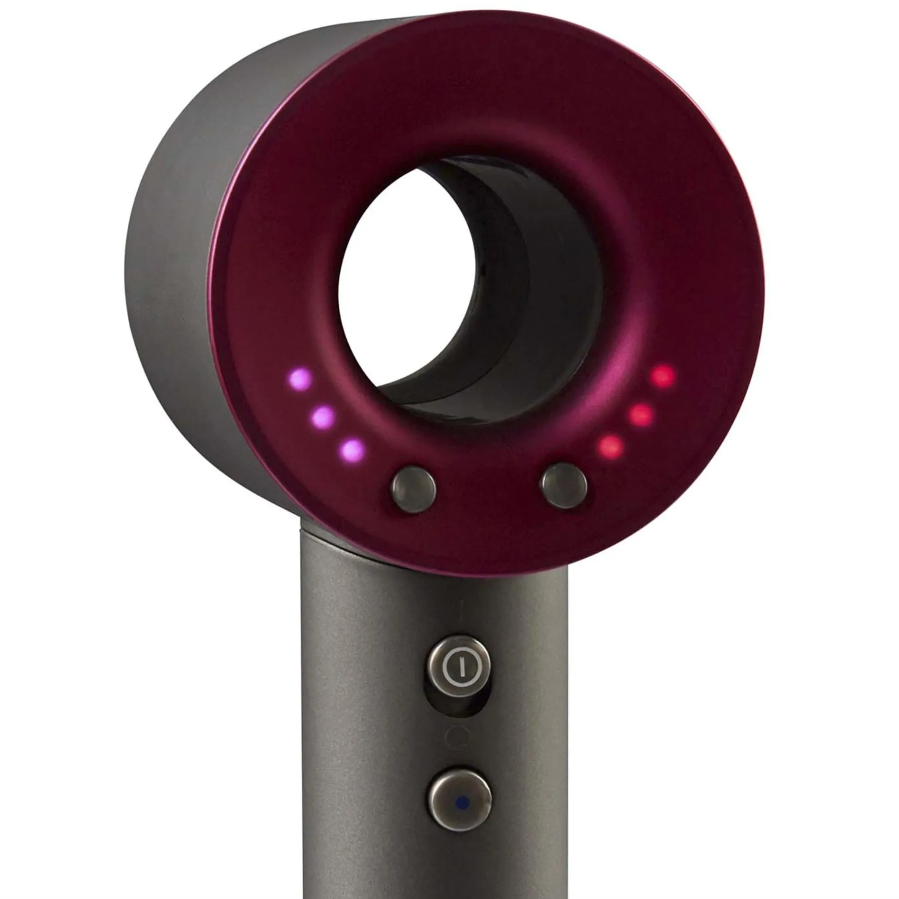 this toy hairdryer mimics real life play, looking just like the famous dyson supersonic hairdryer!