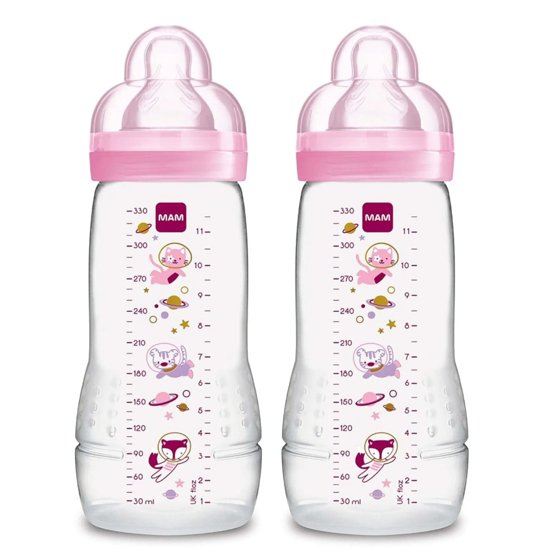 -SUSTAINABILITY, Crafted with bio-circular materials, the MAM 2 Pack, 11 ounces, Fairy Dust color bottles is ideal for your baby girl & the environment.