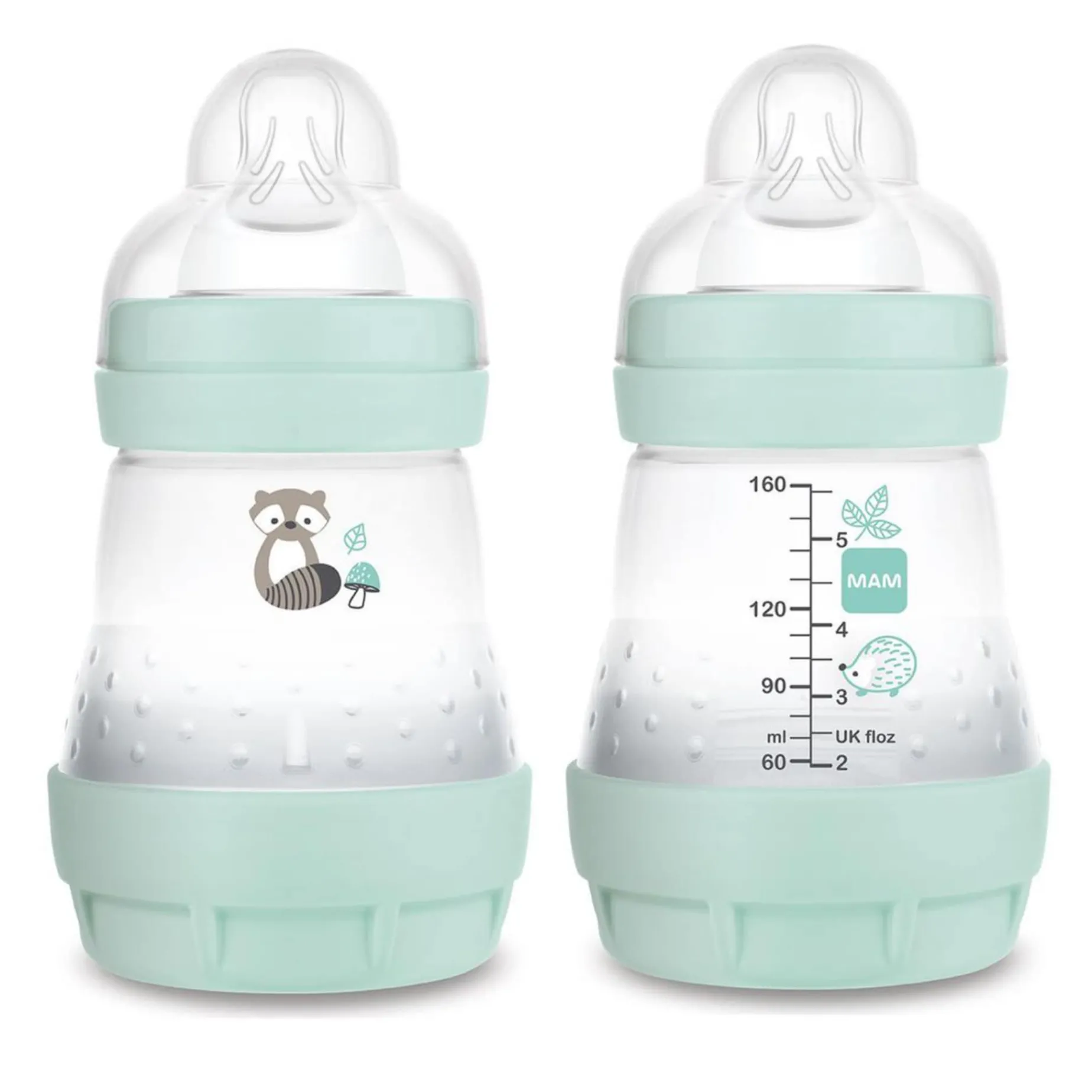 MAM Anti-Colic Bottles have a SkinSoft™ textured nipple that is accepted by 94% of babies* and a patented vented base that regulates pressure ensuring babies do not get air in their tummies while feeding. The wide openings make it easy to clean, fill and assemble. The bottle self-sterilizes in 3 minutes in the microwave in 3 easy steps for easy cleaning. Includes 1 slow-flow nipple. *Market research 2009-2017 tested with 1,508 babies.