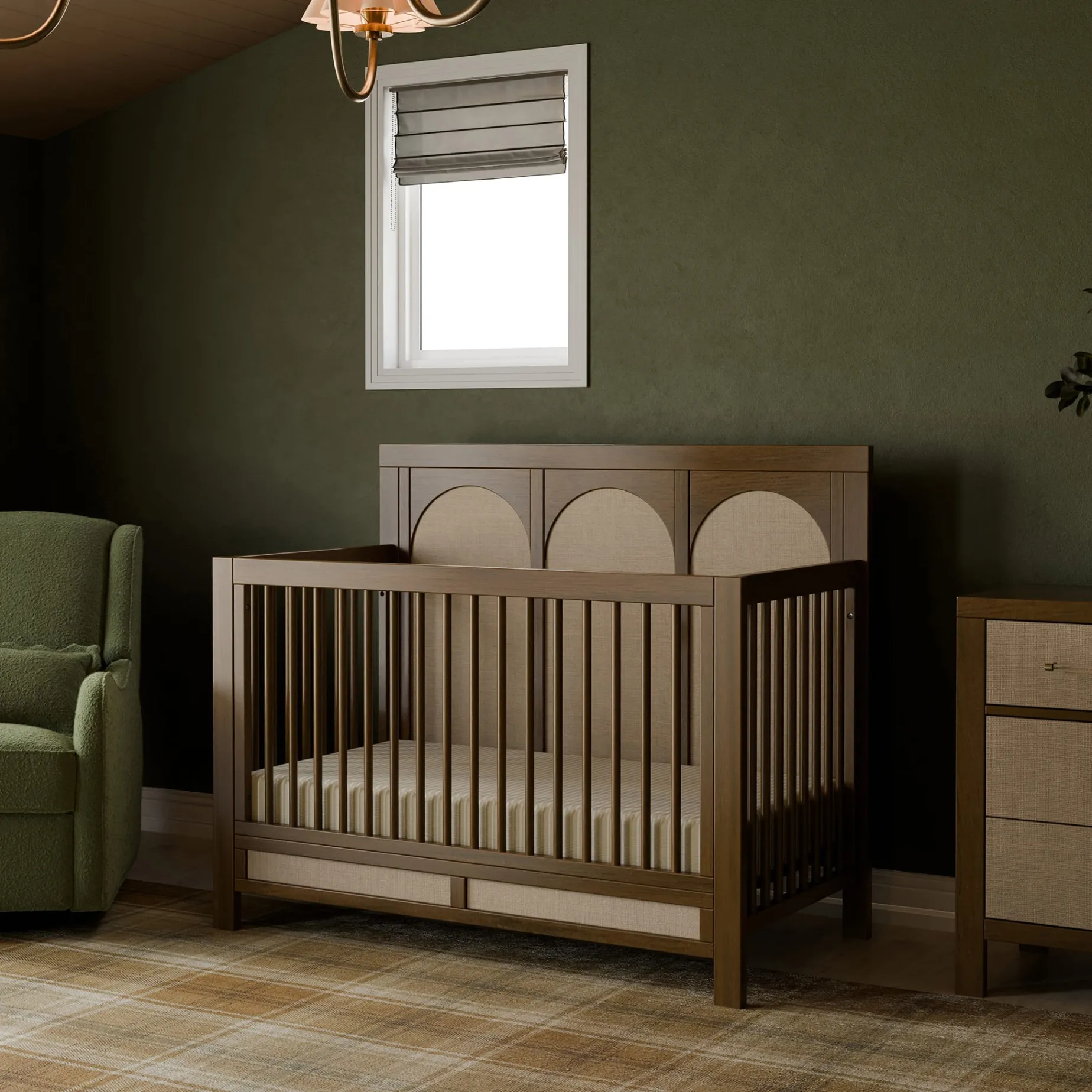 With its timeless silhouette and heirloom-quality fabric, our Eloise 4-in-1 Convertible Crib has a place in any nursery – traditional, modern, or eclectic. The fabric detailing adds depth, character, and a touch of nature-inspired charm to each piece. Its versatility ensures that it will seamlessly transition from crib to sophisticated full-sized bed for any bedroom in the house.