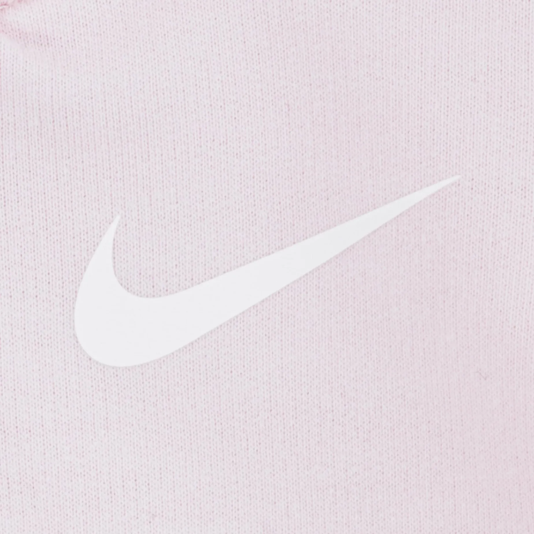Keep your baby cozy in this soft terry coverall with a hood and kangaroo pocket. The full zipper and ribbed cuffs ensure easy dressing and warmth. Features a Nike logo.