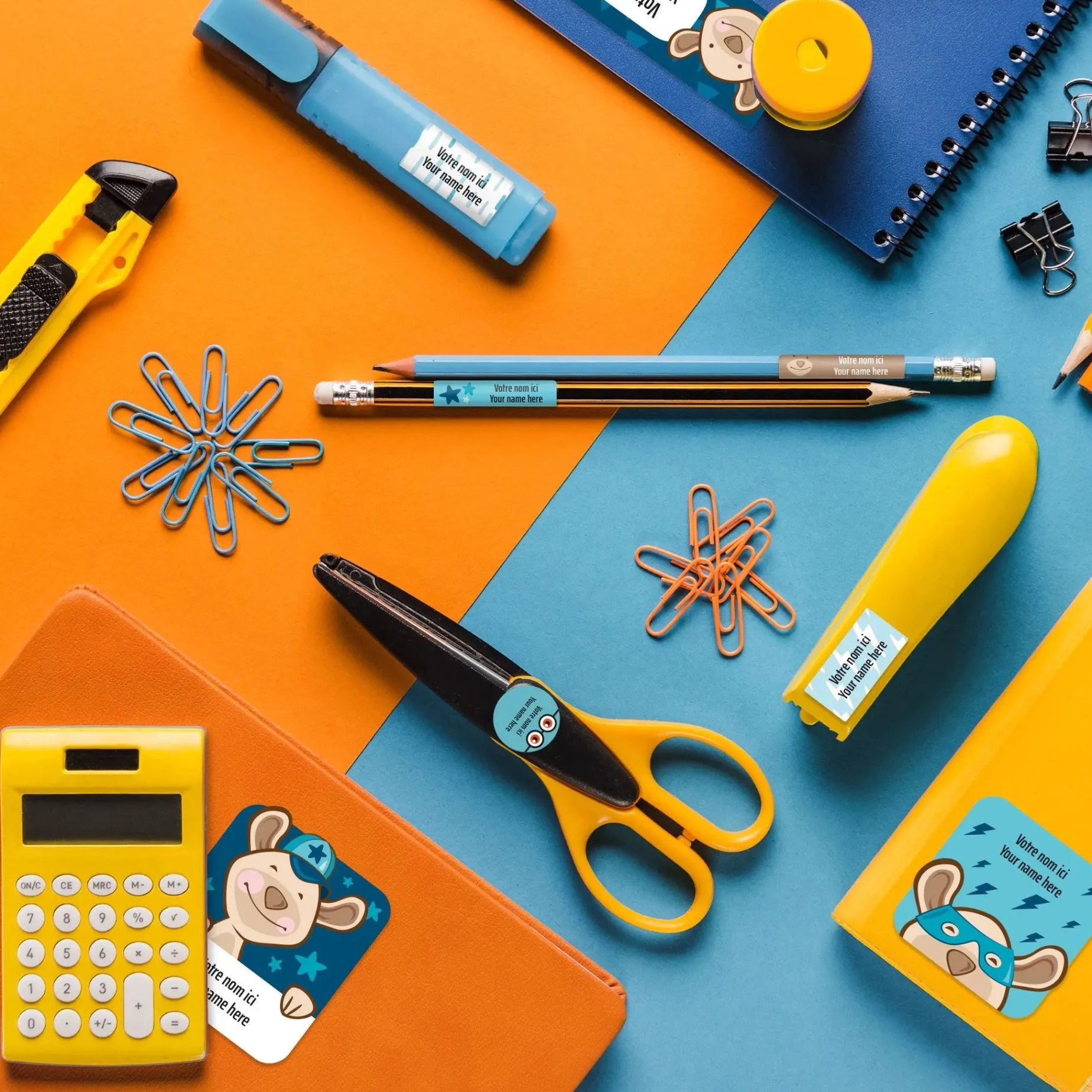 The set of personalized sticky labels Clément becomes your best ally for the quick identification of your family’s personal items. In a few seconds, young and old will be able to recognize their school items, lunchbox items, sports equipment, shoes, clothes, etc. Waterproof and durable, the labels are not afraid of freezing, water, heat, or steam. They are resistant to the microwave, refrigerator, freezer, dishwasher, washing machine, and dryer.