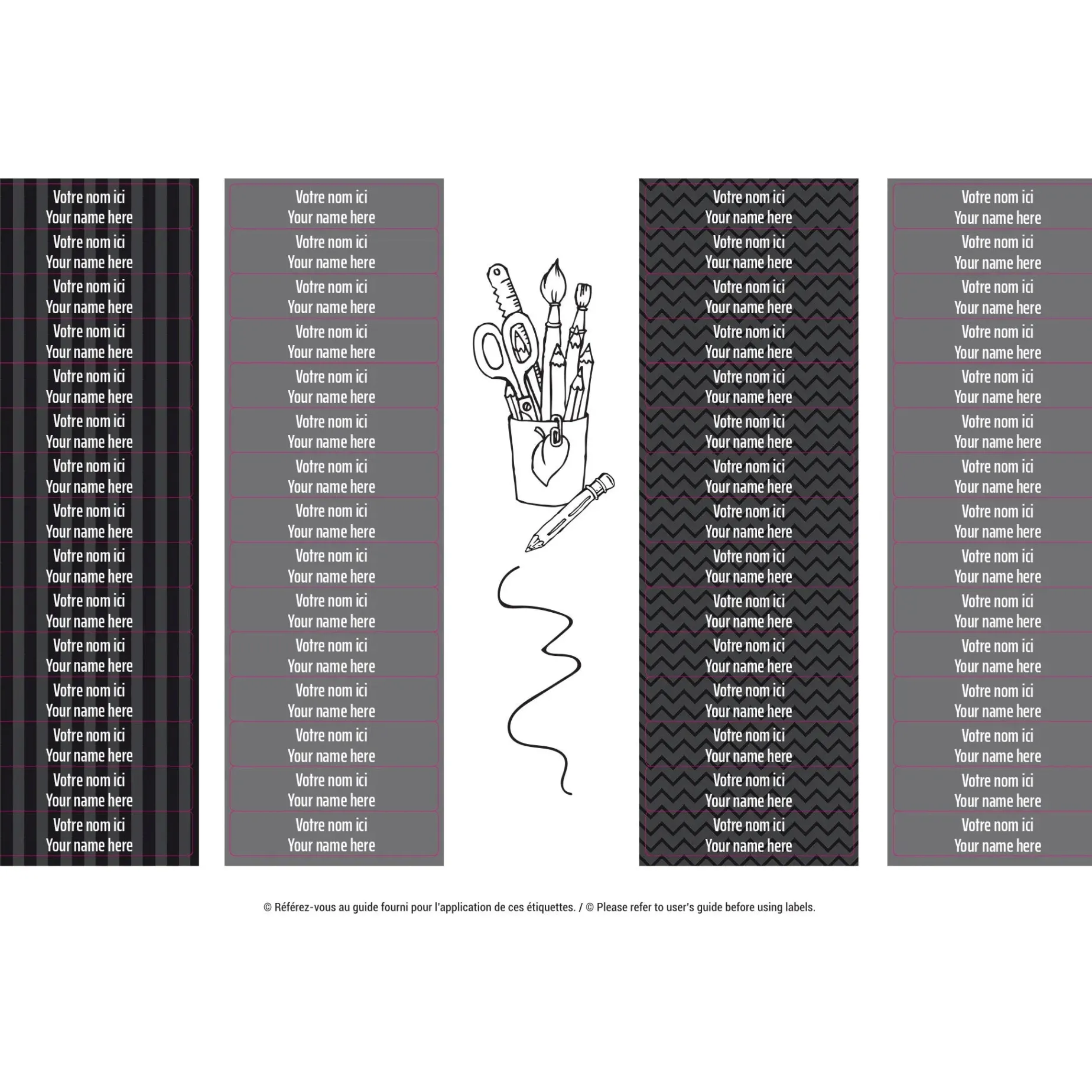 The set of personalized sticky labels Clément becomes your best ally for the quick identification of your family’s personal items. In a few seconds, young and old will be able to recognize their school items, lunchbox items, sports equipment, shoes, clothes, etc. Waterproof and durable, the labels are not afraid of freezing, water, heat, or steam. They are resistant to the microwave, refrigerator, freezer, dishwasher, washing machine, and dryer.