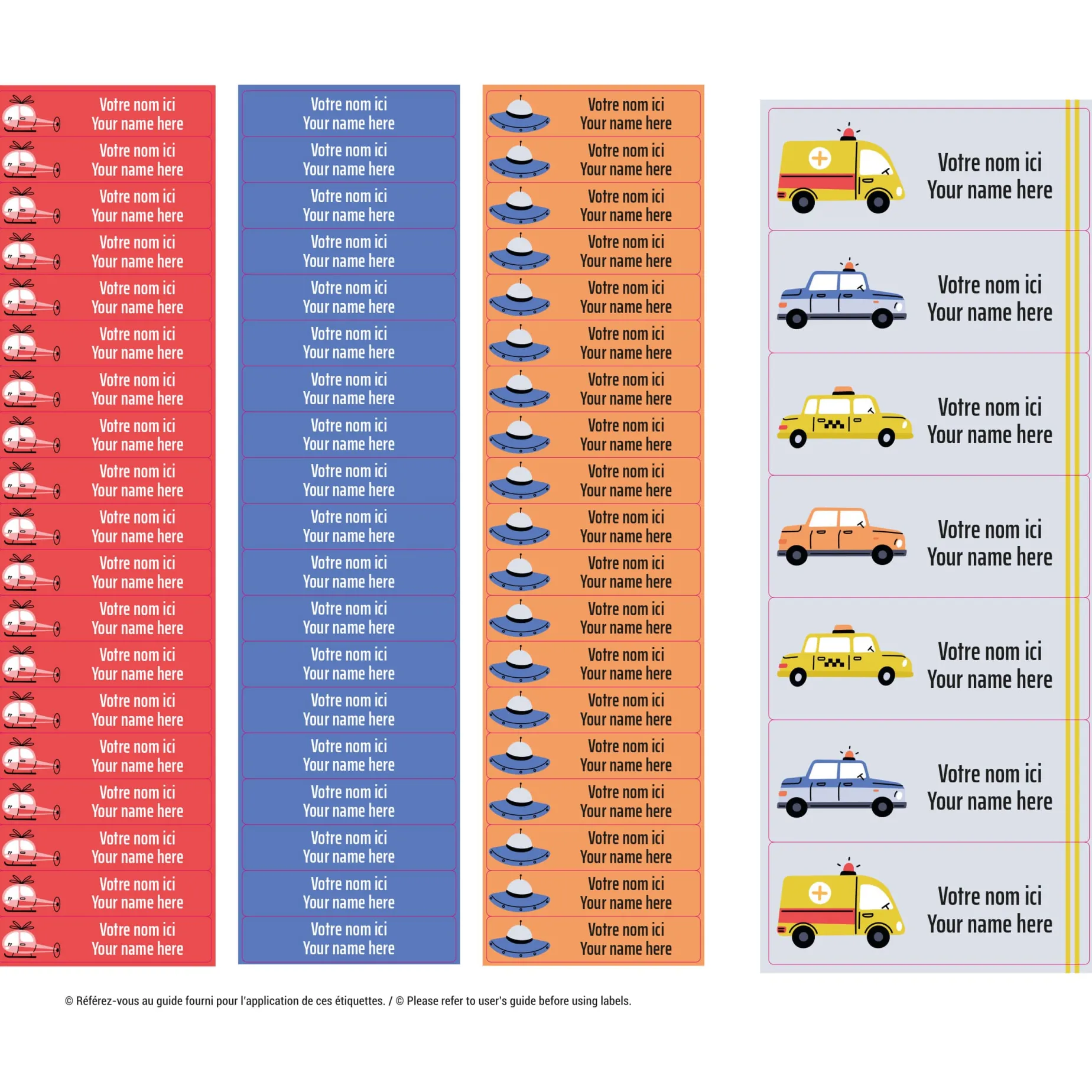 The set of personalized sticky labels ClĂ©ment becomes your best ally for the quick identification of your family’s personal items. In a few seconds, young and old will be able to recognize their school items, lunchbox items, sports equipment, shoes, clothes, etc. Waterproof and durable, the labels are not afraid of freezing, water, heat, or steam. They are resistant to the microwave, refrigerator, freezer, dishwasher, washing machine, and dryer.