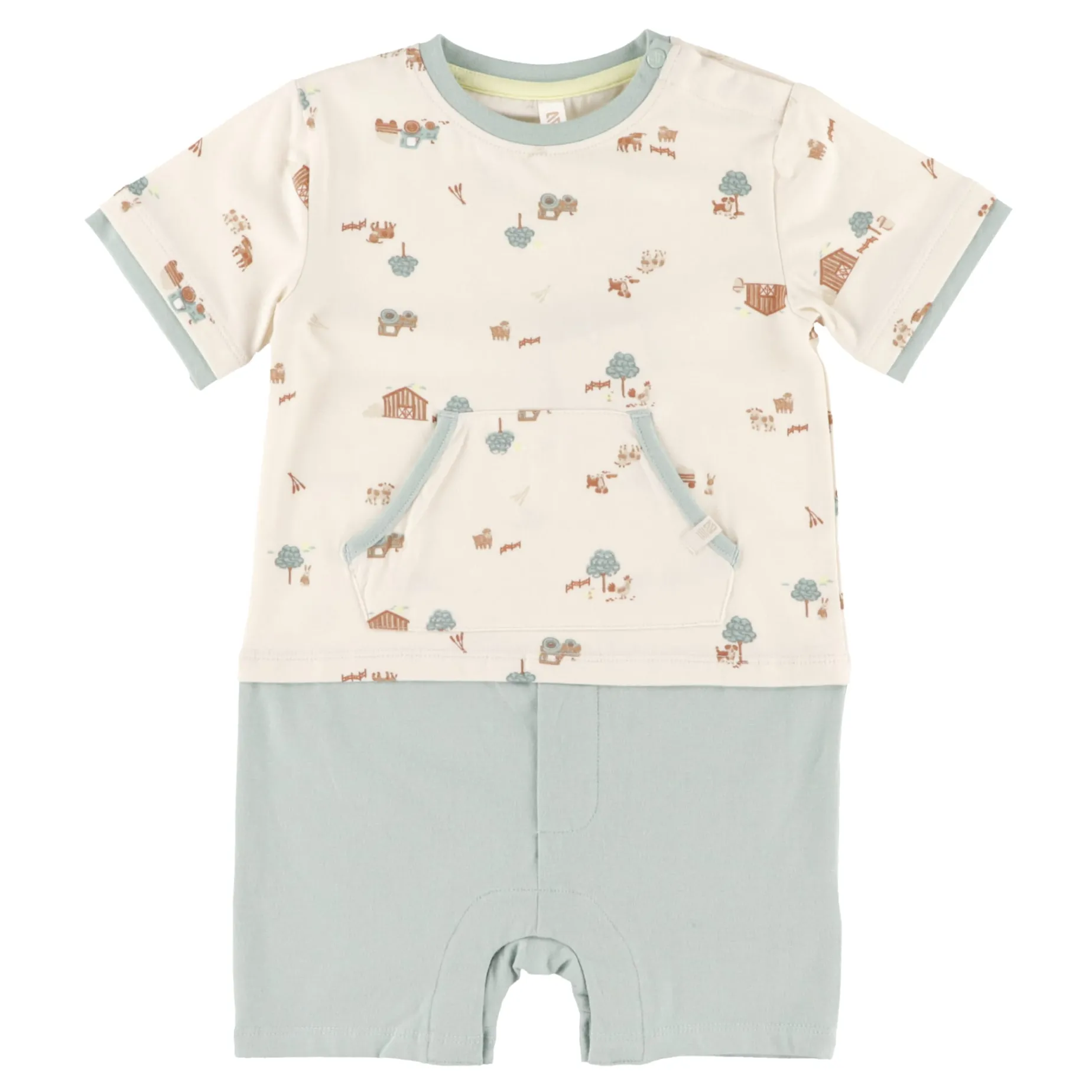 -Solid and printed jersey romper