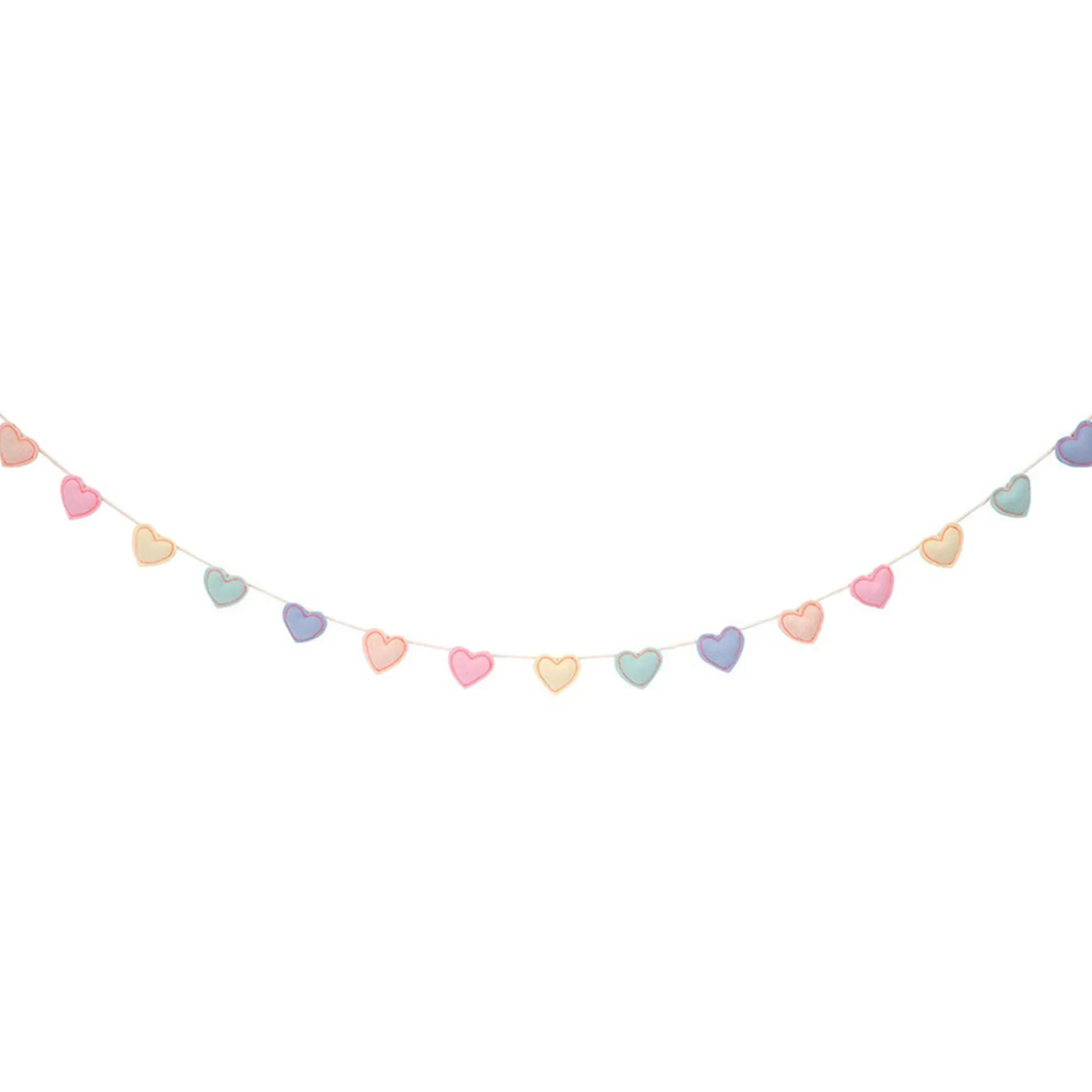 -The garland features 15 padded felt hearts in 5 colors – peach, pale pink, yellow, mint and blue