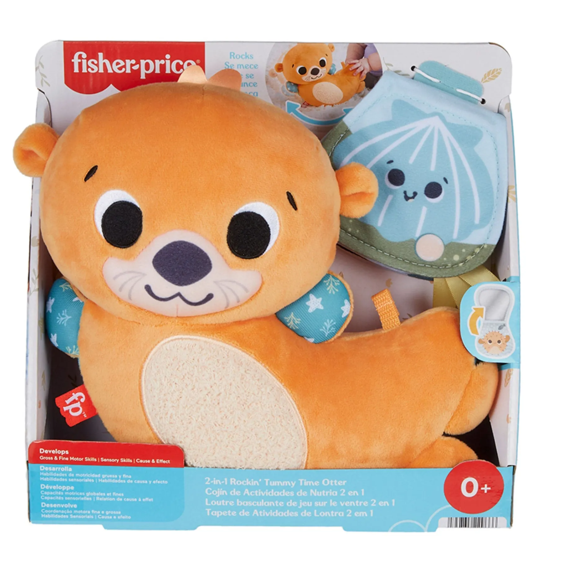 The ”otter-ly” adorable 2-in-1 Rockin’ Tummy Time Otter plush sensory toy from Fisher-Price grows with your baby from tummy time to sit at play. The otter comes with a soft book that features high contrast colors plus a self-discovery mirror and crinkle panel to stimulate baby’s developing senses. During tummy time, position the book’s mirror on the otter’s back for baby to see themselves. When your baby begins to sit up, the otter transitions to become a fun roly-poly toy that rocks back and forth and makes a fun jingle when baby bats play. Both the book and otter are perfect size for on the go fun too!