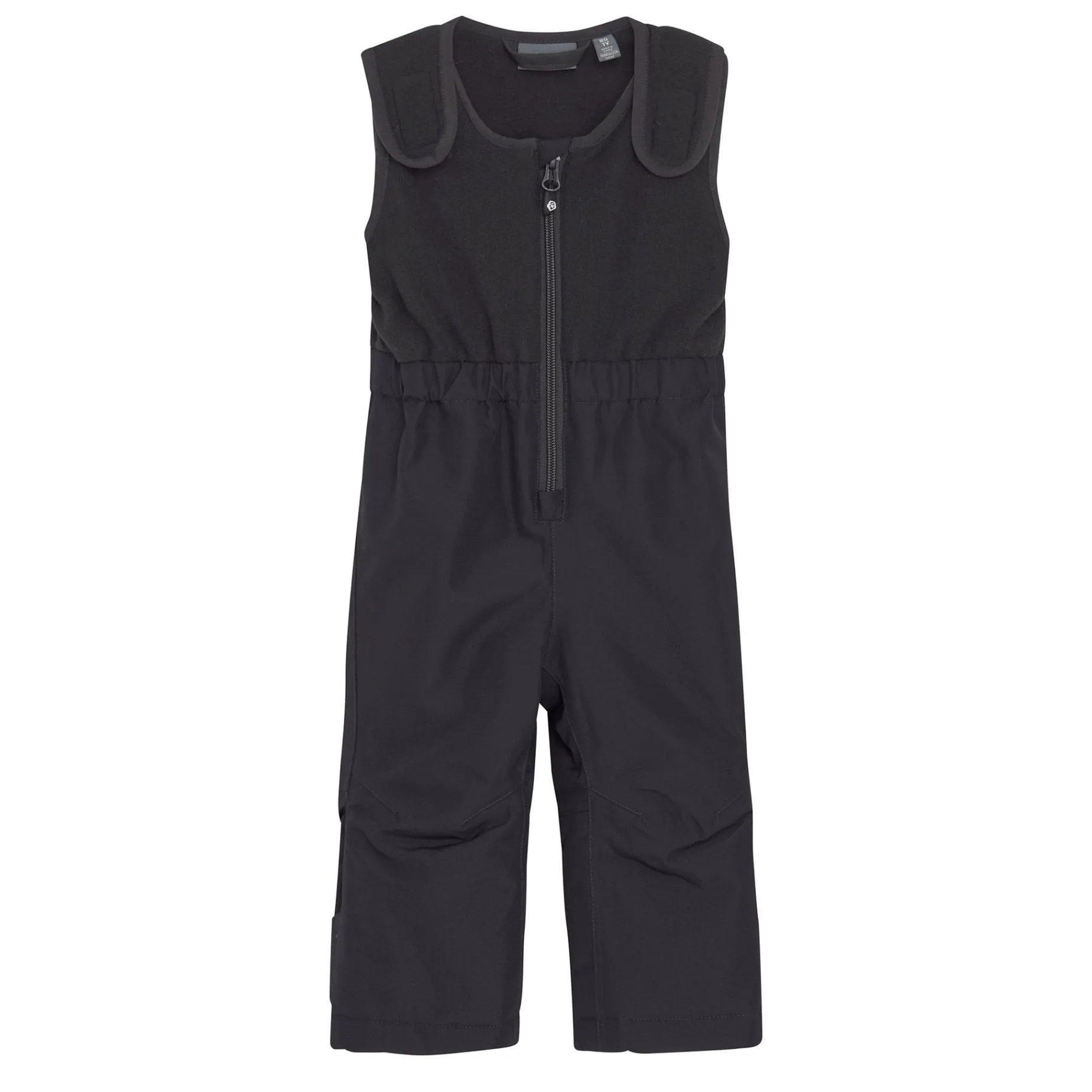 Warm cover-up trousers with fleece top in durable material. The material is breathable, windproof and waterproof, so your child can stay out in rain, snow and wind without getting cold and wet. Tested wear resistance of >60,000 rubs, water column pressure of 10,000 mm. and breathability of 8,000g. The trousers have snow cuffs in the leg openings which keep the snow out. Closes with a zip at the front and can be adjusted with velcro at the shoulders. The trousers go extra long up the back and stomach, where they also have a fleece lining inside. Reflective details on the back. On the inside there is a practical nametag for the child’s name. The trousers are made of partly recycled material. Coated with BIONIC FINISH® ECO. Certified acc. to GRS – Made with more than 50% Recycled Material