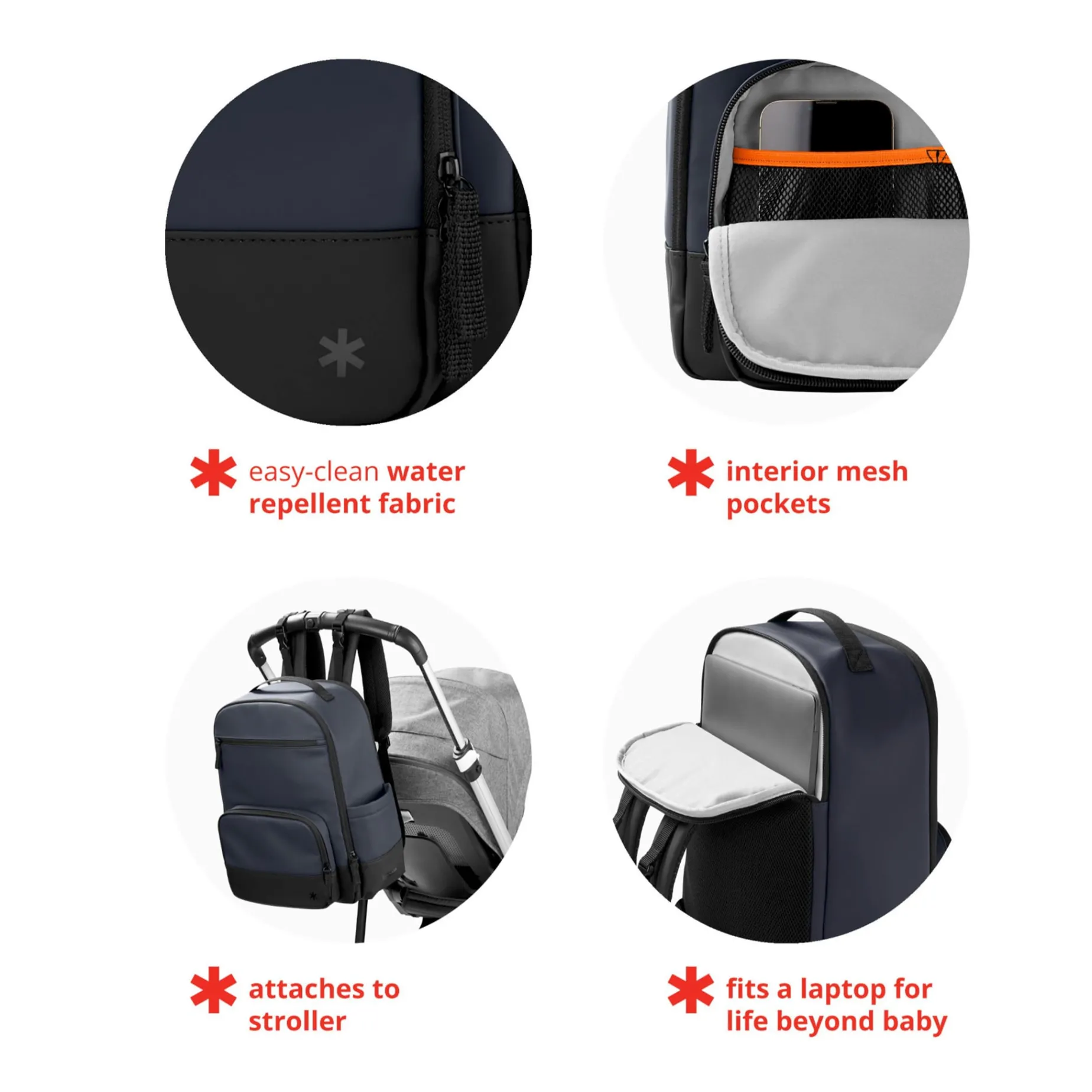 A game-changing must-have packed with streamlined organization and sporty style, our Flex Diaper Bag Backpack features a water-resistant exterior that easily wipes clean after a day of running around town. Loaded with lots of pockets for bottles, wipes, diapers and more, organizing baby’s stuff (with room for yours!) is as easy as pack, grab & go!