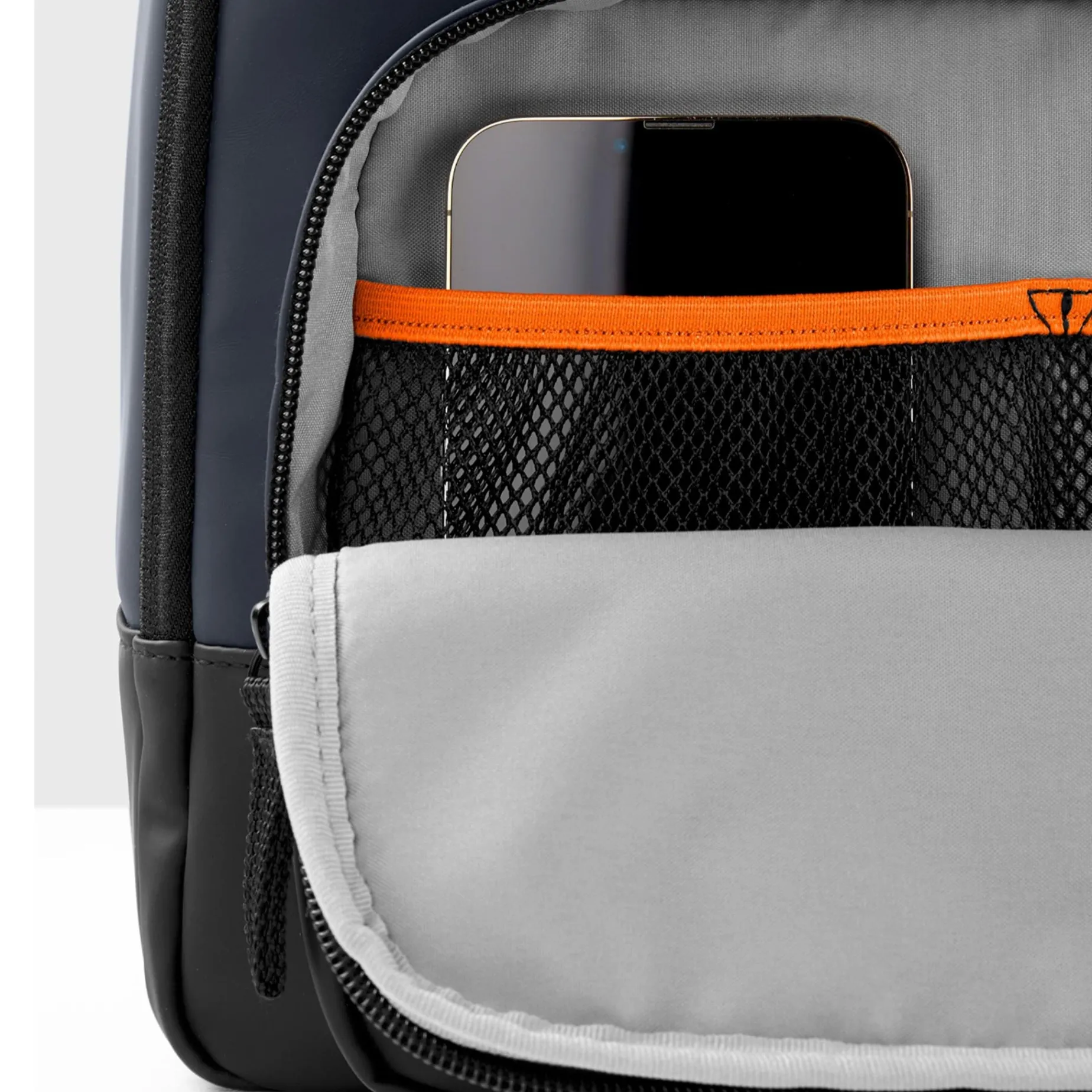 -Front zip pocket & interior mesh pockets