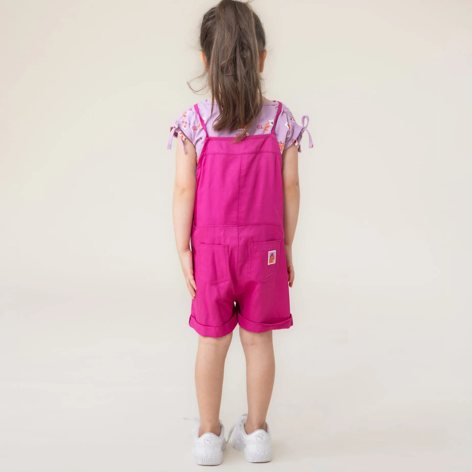 -Solid twill short overalls