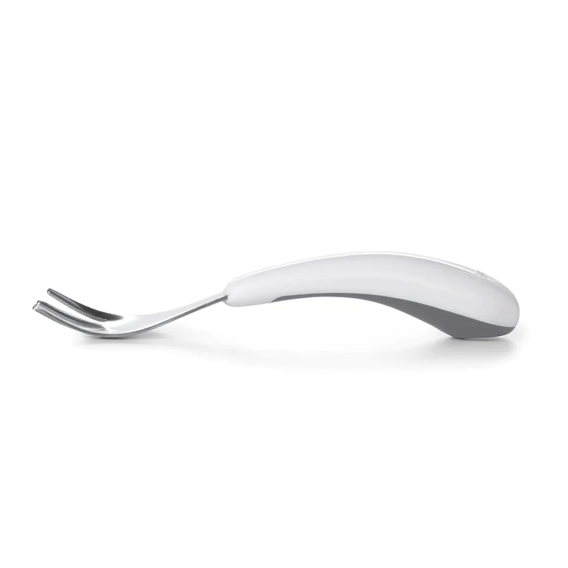 -A flat point on the weighted handles prevents the fork and spoon from rolling off the table or high chair tray
